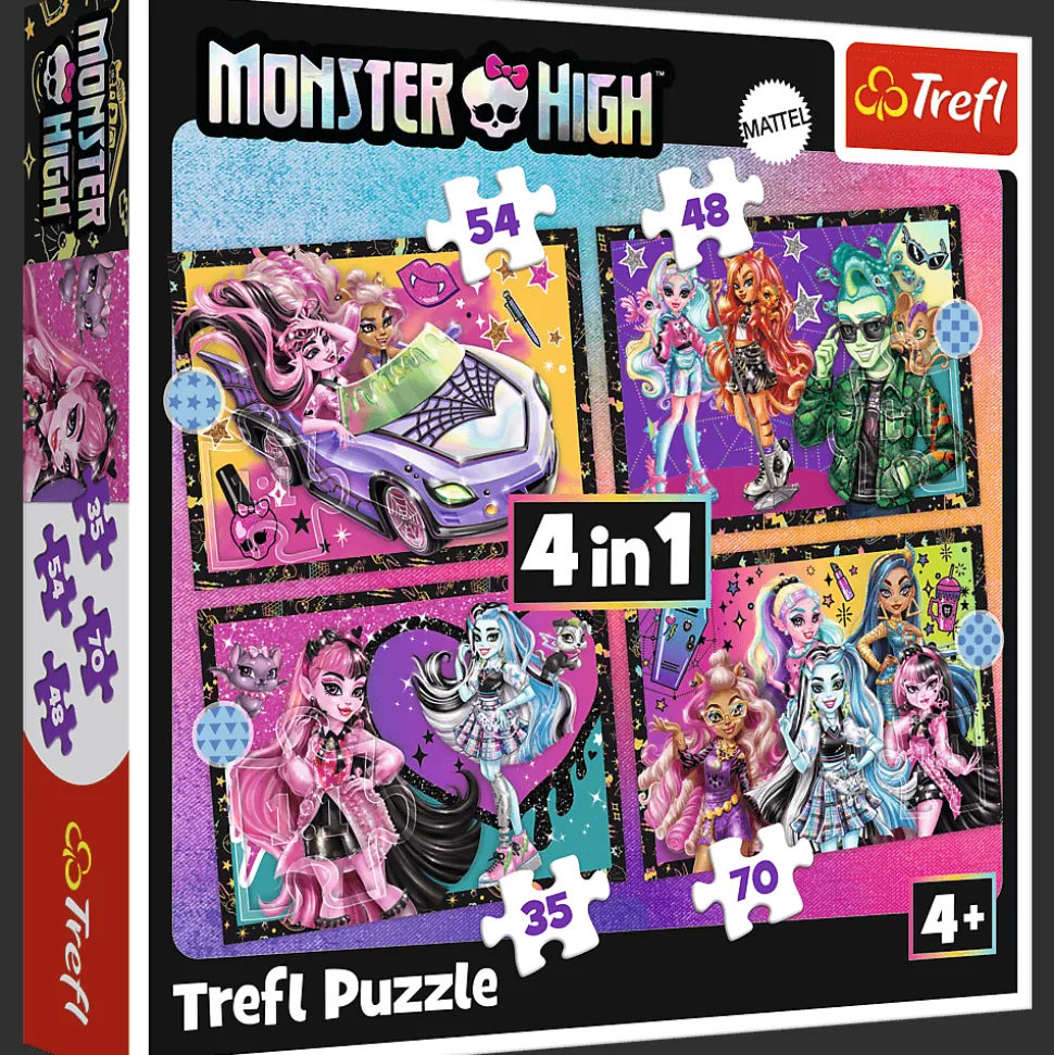 Bajkowe historie to 4 niezależne układanki dla dzieci, zaprojektowane z myślą o małych fanach lalek z serii Monster High. Po ułożeniu puzzli powstaną 4 obrazki, z czego największy o wymiarach 285×205 mm. Zróżnicowana liczba elementów pozwala na zabawę zarówno młodszym, jak i nieco starszym dzieciom.