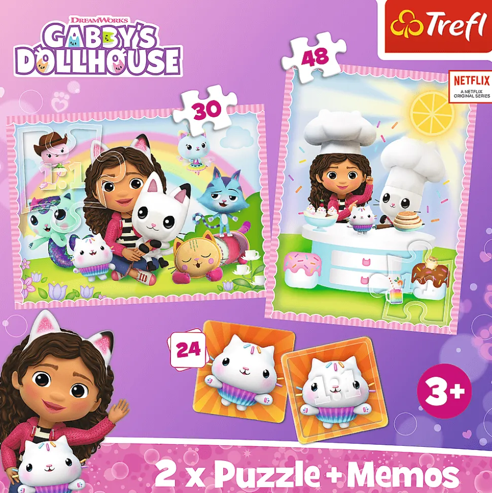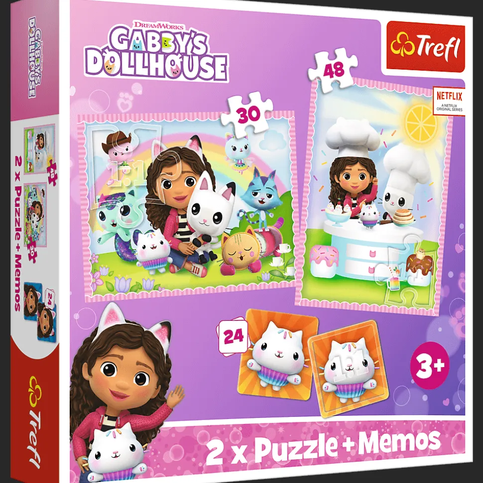 Gabi z kocim przyjacielem to puzzle składające się z 2 niezależnych układanek oraz gry memory, zaprojektowane z myślą o wszystkich fanach i fankach bajki Koci Domek Gabi.