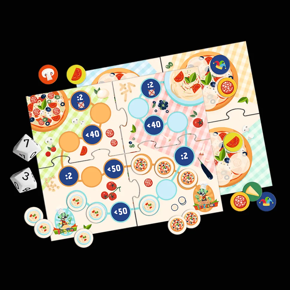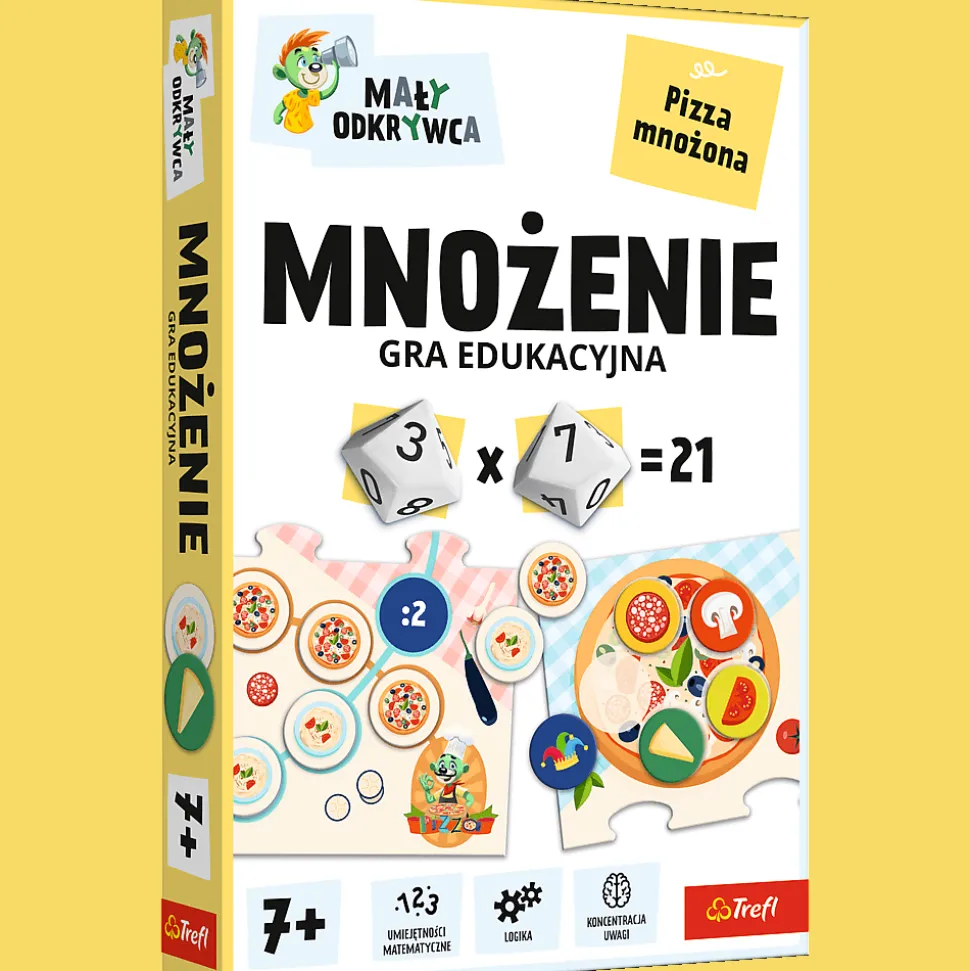 Poznajcie wyjątkową układankę edukacyjną Mnożenie, która w prosty i przyjemny sposób wprowadza maluchy w świat mnożenia do 100! Dzięki wprowadzeniu mechaniki współzawodnictwa przy komponowaniu własnej pizzy i wyścigu kucharzy, dziecko rozwija nie tylko koncentrację uwagi i spostrzegawczość, ale także kształtują się jego kompetencje społeczne i emocjonalne.