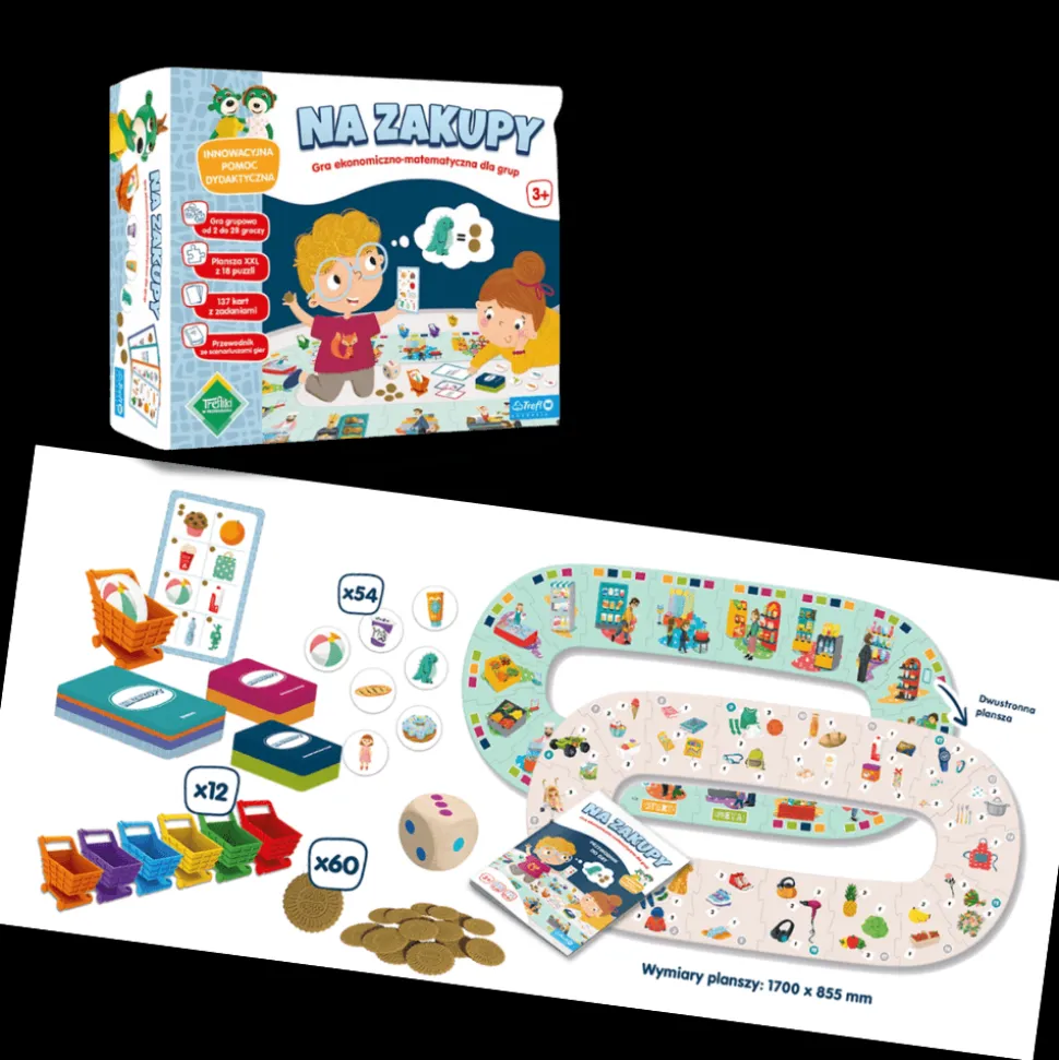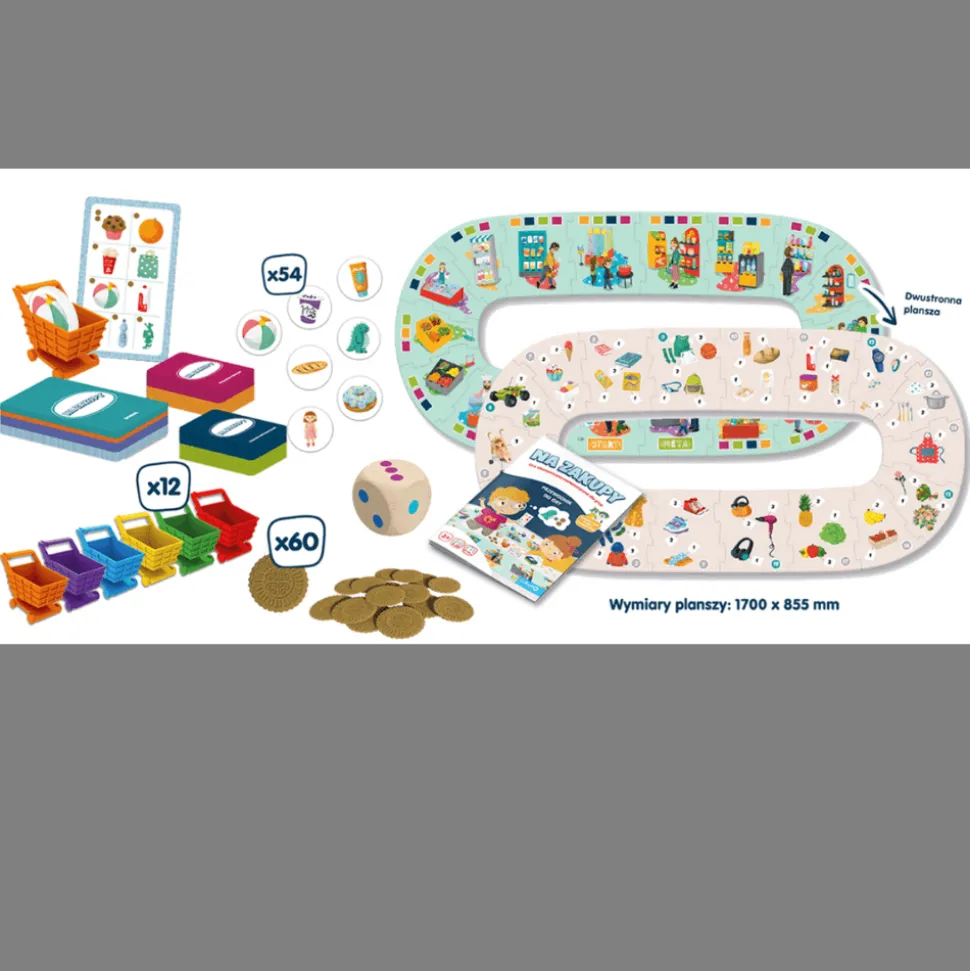 Na zakupy to gra planszowa dla grup – jednocześnie może w niej uczestniczyć od 2 do 28 dzieci. Przedszkolaki, nie wychodząc z sali, wezmą do rąk koszyki i będą zbierać do nich produkty, za które trzeba zapłacić – dokładnie jak na prawdziwych zakupach!