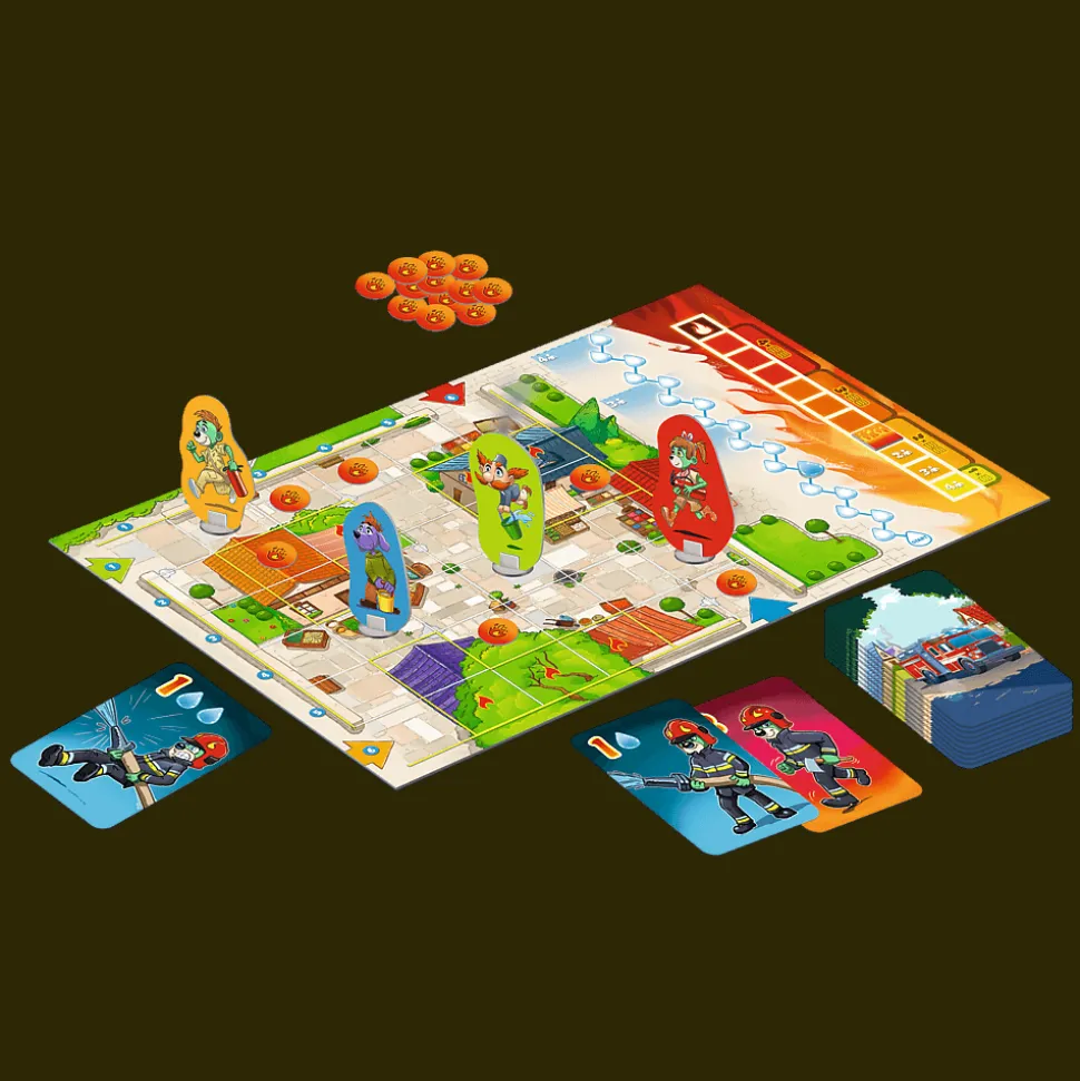 Wciel się w dzielnych strażaków i pomóż Treflikowi oraz jego przyjaciołom powstrzymać pożar, który wybuchł na ryneczku! Pamiętaj, że musicie współpracować, poruszać się po planszy i gasić ogień, zanim sytuacja wymknie się spod kontroli. Będziecie poruszać się po planszy przy użyciu kart strażaków, jednocześnie gasząc pożary powstające w losowych miejscach. Każda ugaszona iskra przybliża Was do zwycięstwa!