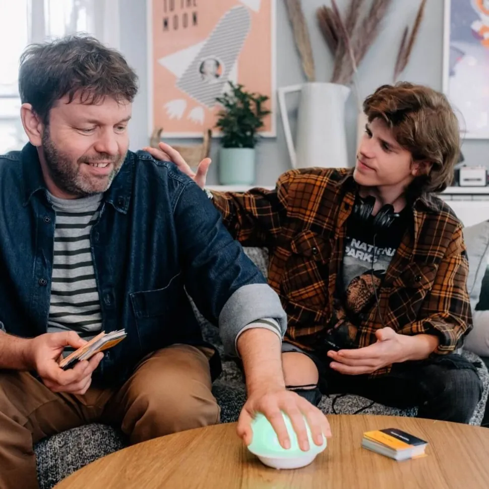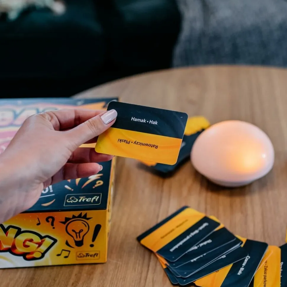 Gracz, który jako pierwszy wymyśli pytanie, które łączy wyrazy z karty, naciska przycisk. Wtedy on zacznie świecić i odtwarzać melodię. W tym czasie każdy z Was może udzielić swojej odpowiedzi na zadane pytanie i nacisnąć przycisk, aby przejąć punkt od przeciwnika. Każdy z Was ma tylko kilka sekund na udzielenie 2 szybkich odpowiedzi!