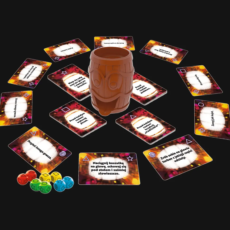 Rozgrywka jest bardzo prosta i wciągająca – wrzuć kostki do beczki, postaraj się wyrzucić odpowiednie symbole pokazane na karcie, a następnie wykonaj szalone zadania, które potrafią naprawdę zaskoczyć! Osoba, która jako pierwsza wykona wszystkie zadania ze swojej karty – wygrywa! Gra łączy elementy zręczności, refleksu i kreatywności, a proste zasady sprawiają, że zabawa zaczyna się natychmiast po otwarciu pudełka.