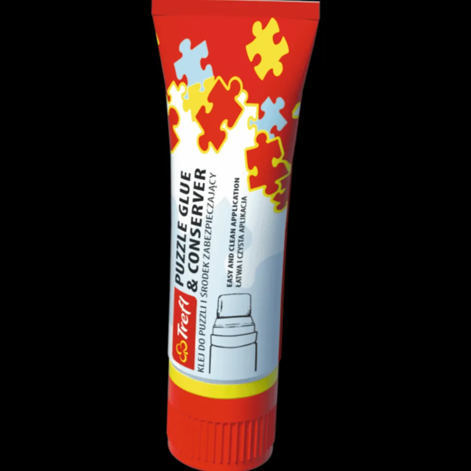 Klej w tubce z gąbką do łatwej i czystej aplikacji to środek konserwujący i klej do puzzli w jednym. Połączone za jego pomocą puzzle można z łatwością przenieść, postawić lub powiesić a ochronna powłoka zabezpiecza je przed zanieczyszczeniami. Rozprowadź klej równomiernie na całej powierzchni z obrazkiem. Zostaw do wyschnięcia i gotowe!