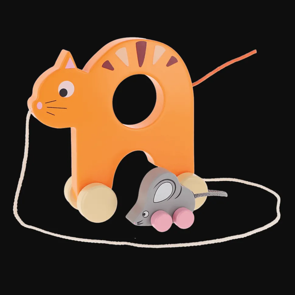 Zabawki Kotek z myszką na drewnianych kółeczkach zostały wykonane z naturalnego, bezpiecznego dla dzieci drewna.