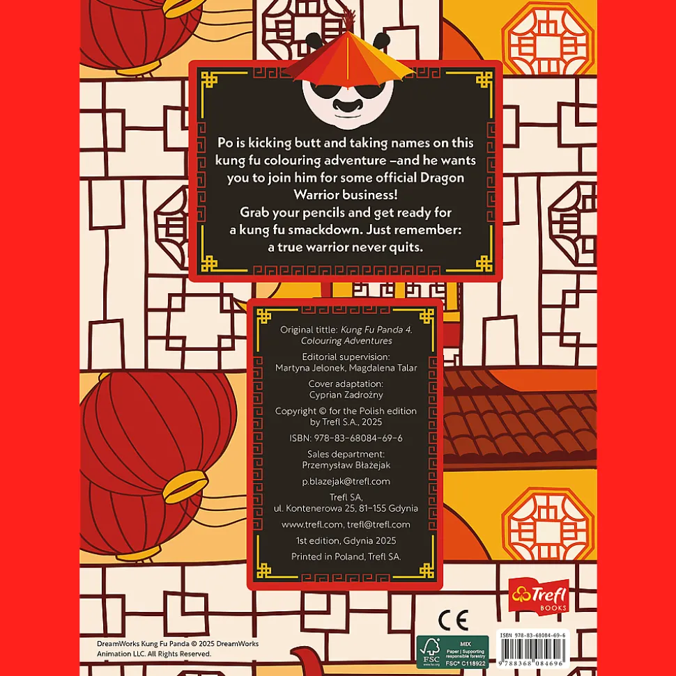 Poznaj niesamowite przygody Po i jego przyjaciół z Doliny Spokoju w kolorowance pełnej akcji i humoru! Ta książeczka aktywizująca przenosi dzieci do świata kung-fu, gdzie czeka mnóstwo scen do pokolorowania. Rozwija kreatywność, precyzję i sprawność manualną, zapewniając twórczą zabawę z bohaterami jednej z najbardziej uwielbianych animacji. Doskonała propozycja dla małych fanów sztuk walki i zabawnych przygód!