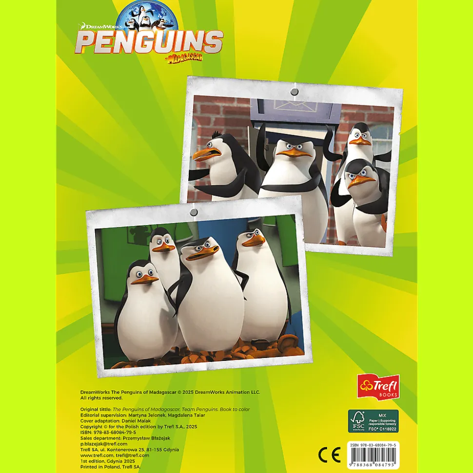 Dołącz do Skippera, Kowalskiego, Rico i Szeregowego w pełnej humoru i akcji kolorowance inspirowanej popularnym serialem animowanym Pingwiny z Madagaskaru! Ta książeczka aktywizująca rozwija dziecięcą kreatywność, zdolności manualne i precyzję. Przygody pingwinów do pokolorowania to doskonały sposób na twórczą zabawę z ulubionymi bohaterami. Idealna dla małych miłośników animacji i misji specjalnych!