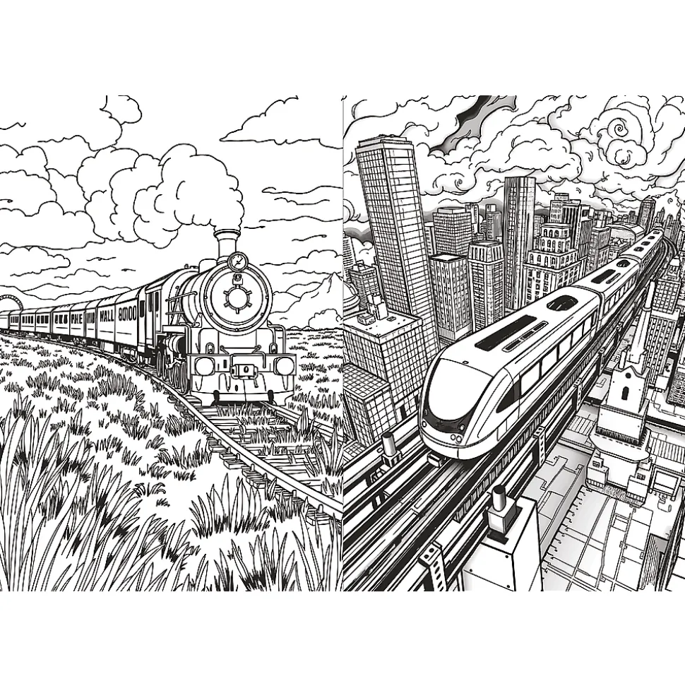 Książka aktywizująca Pociągi i samoloty, kolorowanka