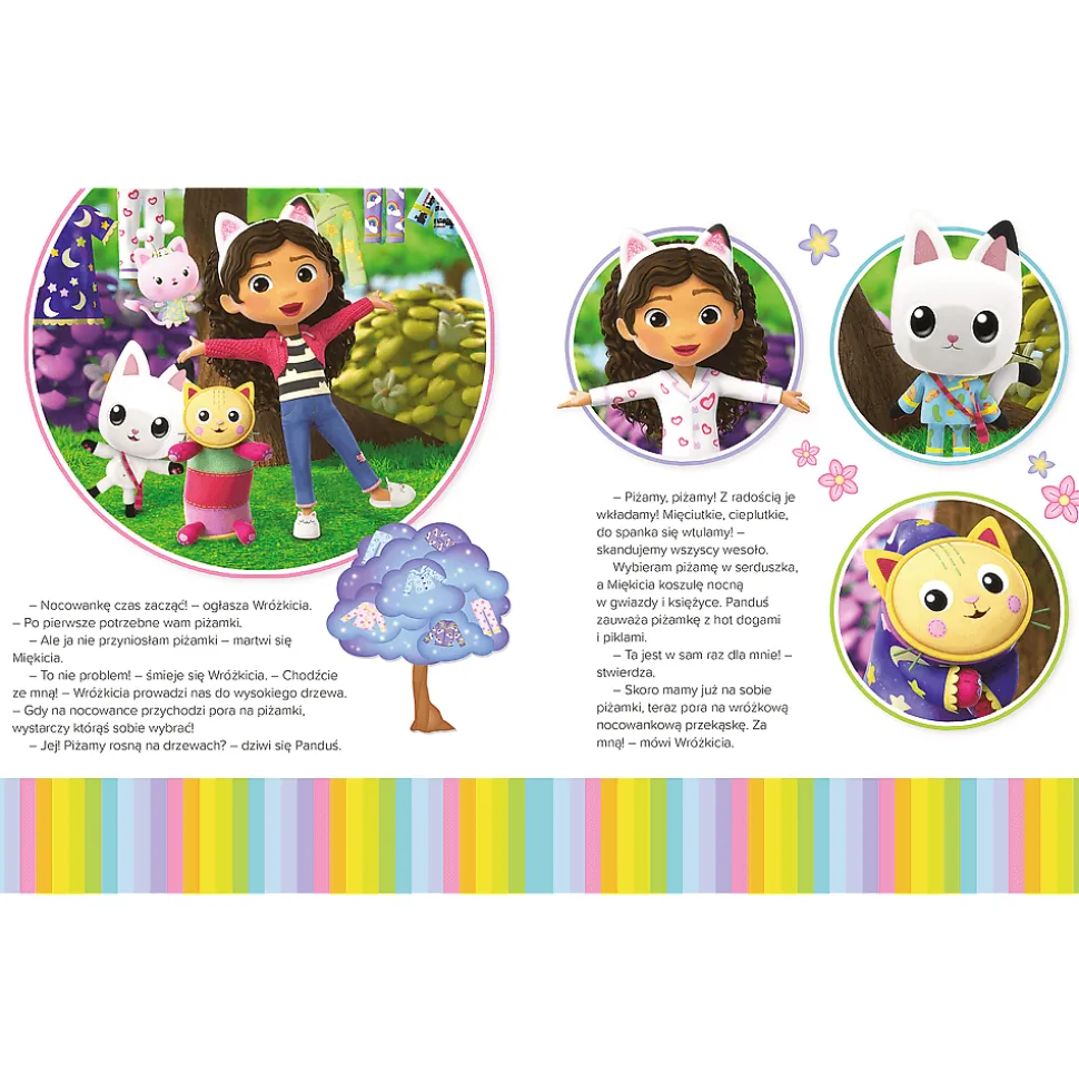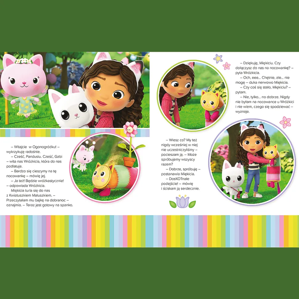 Gabi, Kiciuś Panduś i wszyscy ich przyjaciele szykują się na magiczną piżamową imprezę w ogrodzie Wróżkici. Ale Miękicia jest zestresowana — nigdy wcześniej nie była na nocnym przyjęciu. Na szczęście Gabi i jej magiczni przyjaciele wiedzą, co zrobić, aby wszyscy świetnie się bawili — nowe piżamy, pyszne przekąski i przede wszystkim specjalna opowieść pełna gwiazd. To najlepsza piżamowa impreza wszechczasów! Książka Nocowanka u Wróżkici z opowiadankami na bazie popularnego serialu dla dzieci Koci Domek Gabi.