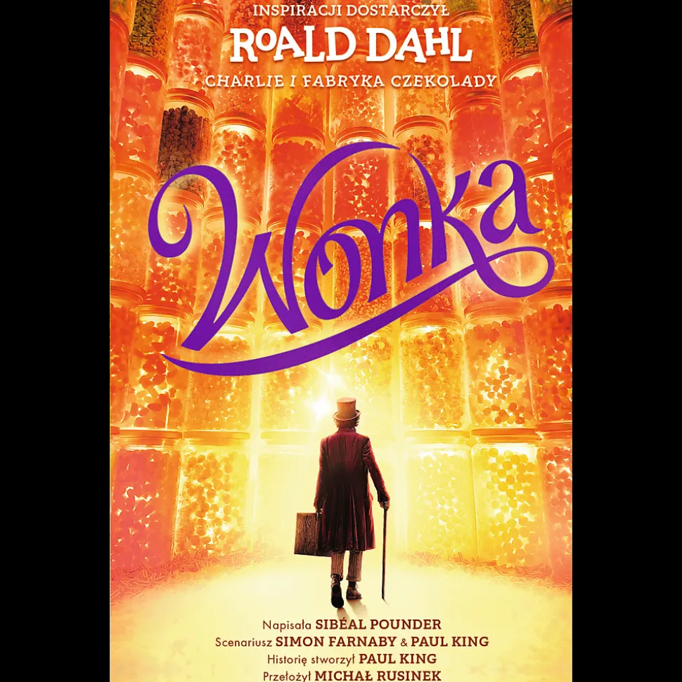 WONKA to przepyszny film o marzeniach, przyjaźni i czekoladzie produkcji Warner Bros. Wyreżyserowany został przez Paula Kinga, który wymyślił tę historię oraz napisał do niej scenariusz wraz z Simonem Farnabym. Na karty książki przełożyła ją bestsellerowa autorka, Sibéal Pounder.