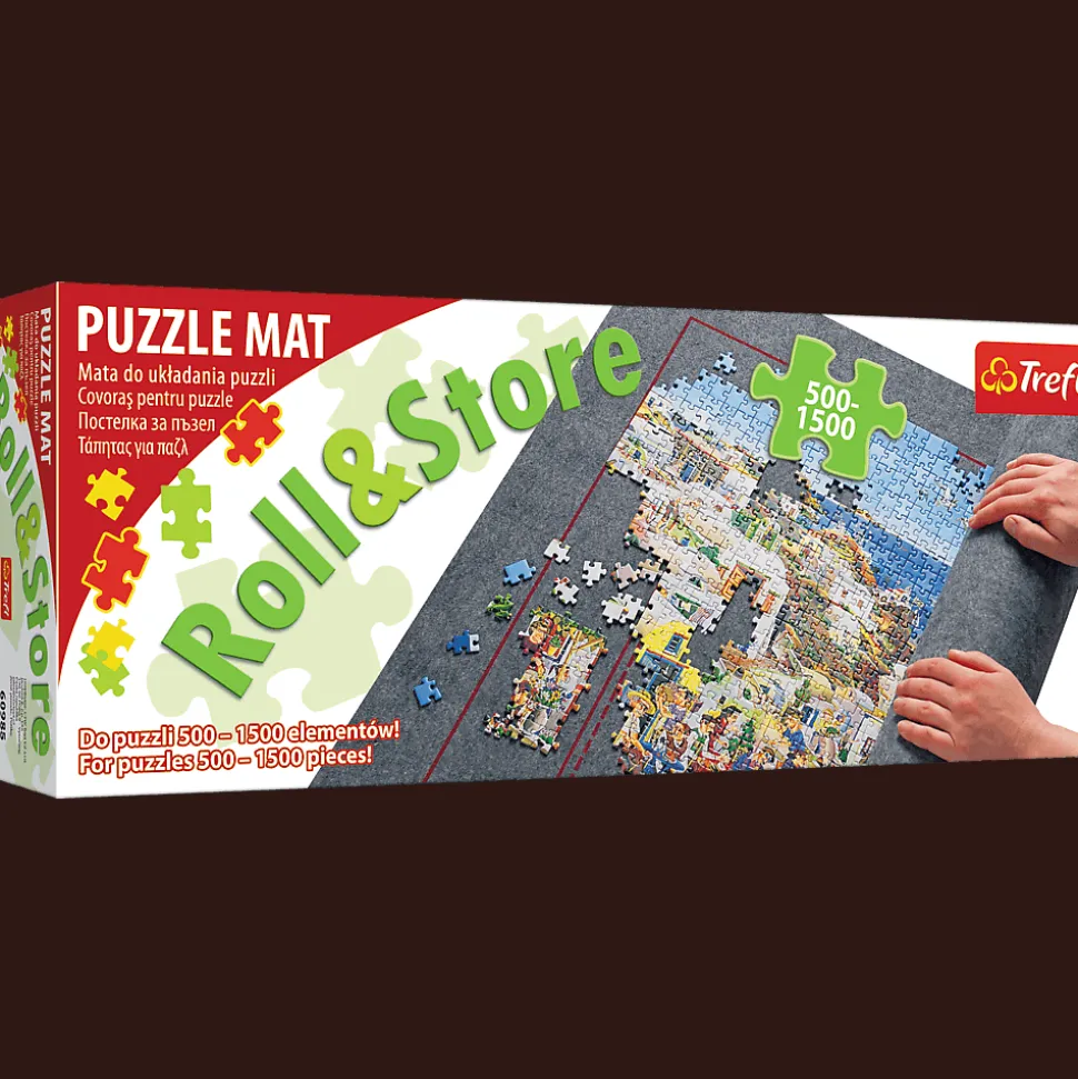 Filcowa mata do puzzli, pozwala układać i w prosty sposób przechowywać nieukończone układanki. Na powierzchni maty umieszczone są specjalne rami pasujące do puzzli 500, 1000 i 1500 elementów. Mata po rozłożeniu ma wymiar 94 x 67 cm.
