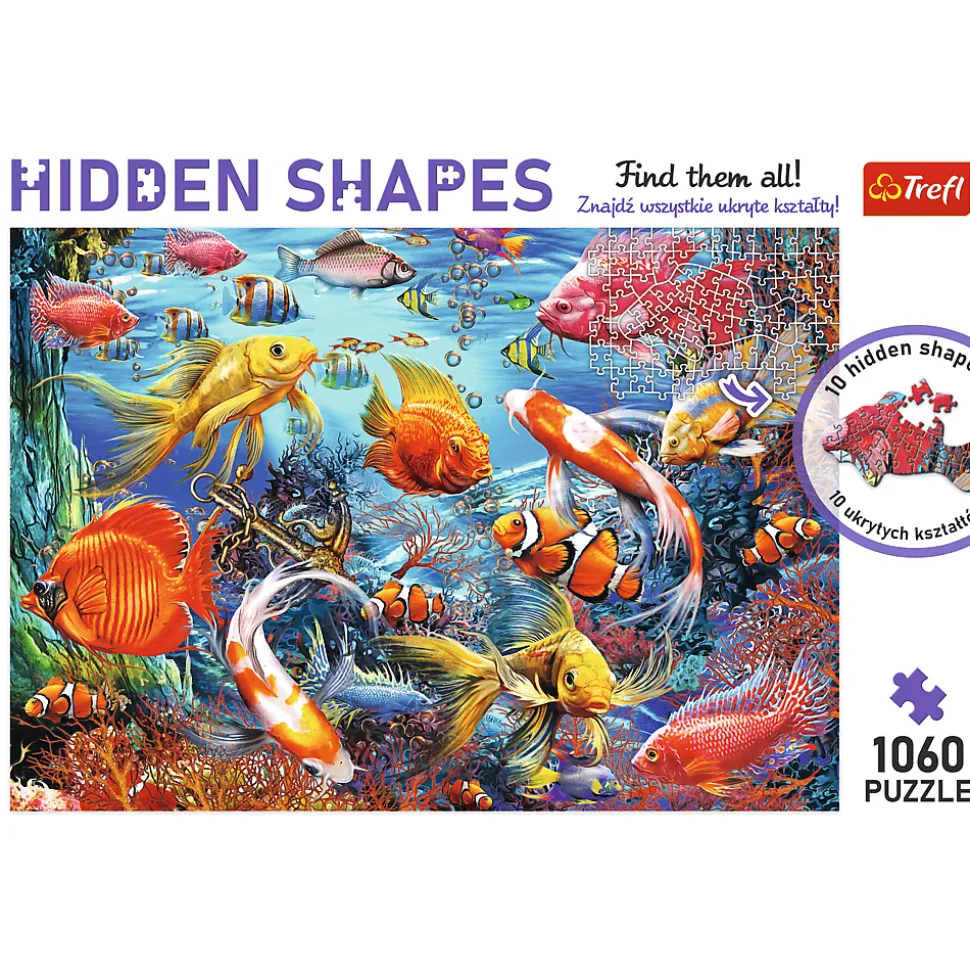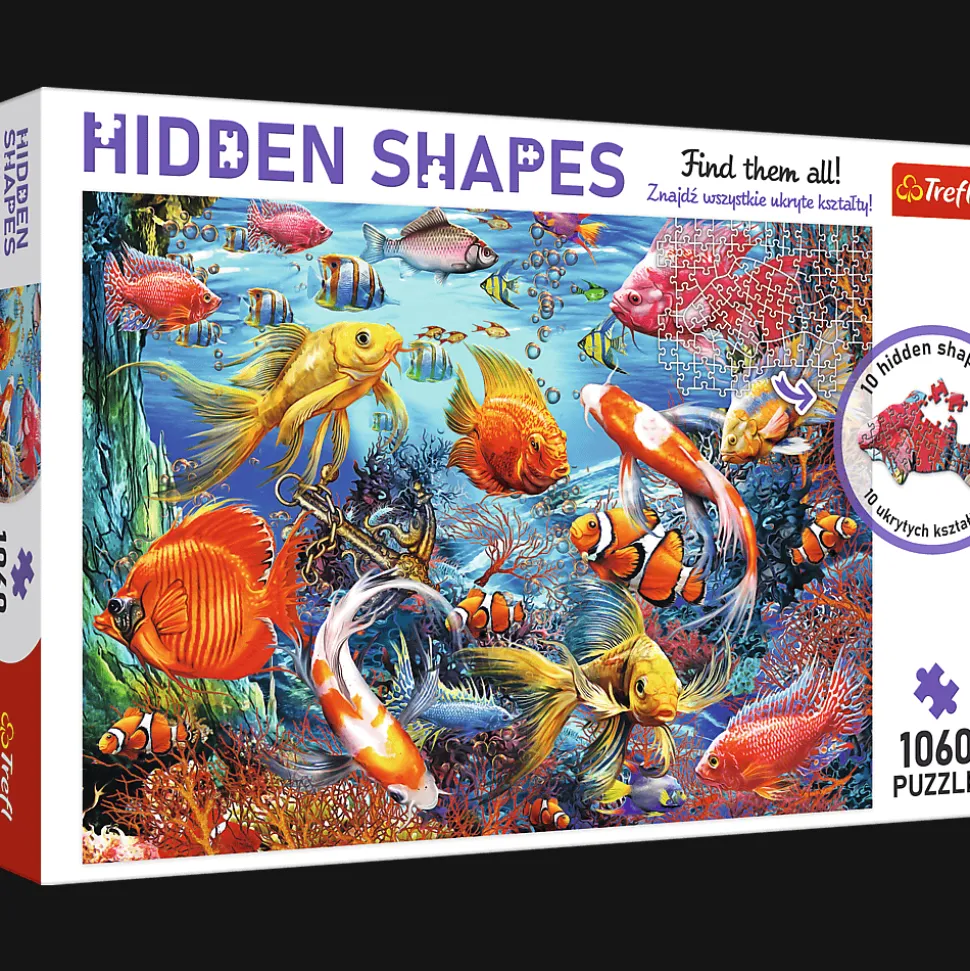 Seria Hidden Shapes to podwójna dawka zabawy. Układaj puzzle i odkrywaj ukryte kształty. Podwodne życie kryje w sobie 10 unikatowych kształtów, które widoczne są dopiero po ułożeniu puzzli. Baw się dobrze i znajdź je