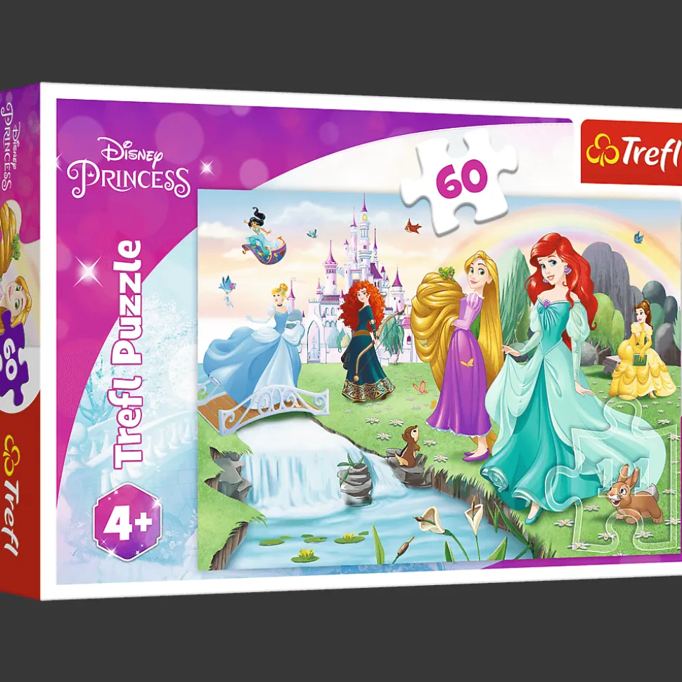 Poznaj Księżniczki to puzzle składające się z 60 elementów, zaprojektowaną z myślą o wszystkich fanach i fankach bajkowych księżniczek Disney. Po ułożeniu układanki powstanie obrazek o wymiarach 330x220mm.