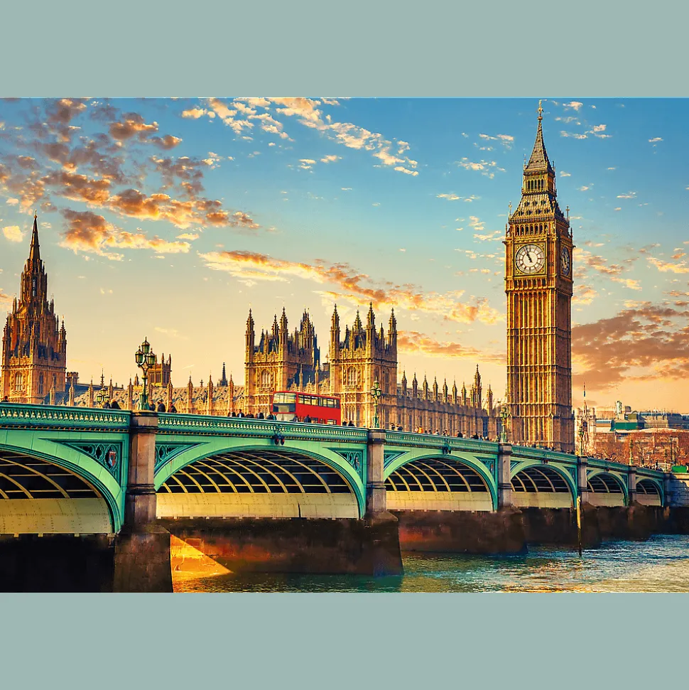 Puzzle 1500 elementów ze wspaniałym widokiem na Pałac Westminsterski w Londynie. Po ułożeniu powstanie obrazek o wymiarach 85x58cm. Wysoką jakość, nasycenie kolorów i bezpieczeństwo układania zapewnia kalandrowany papier odbijający światło, pokryty ekologicznymi farbami spożywczymi.