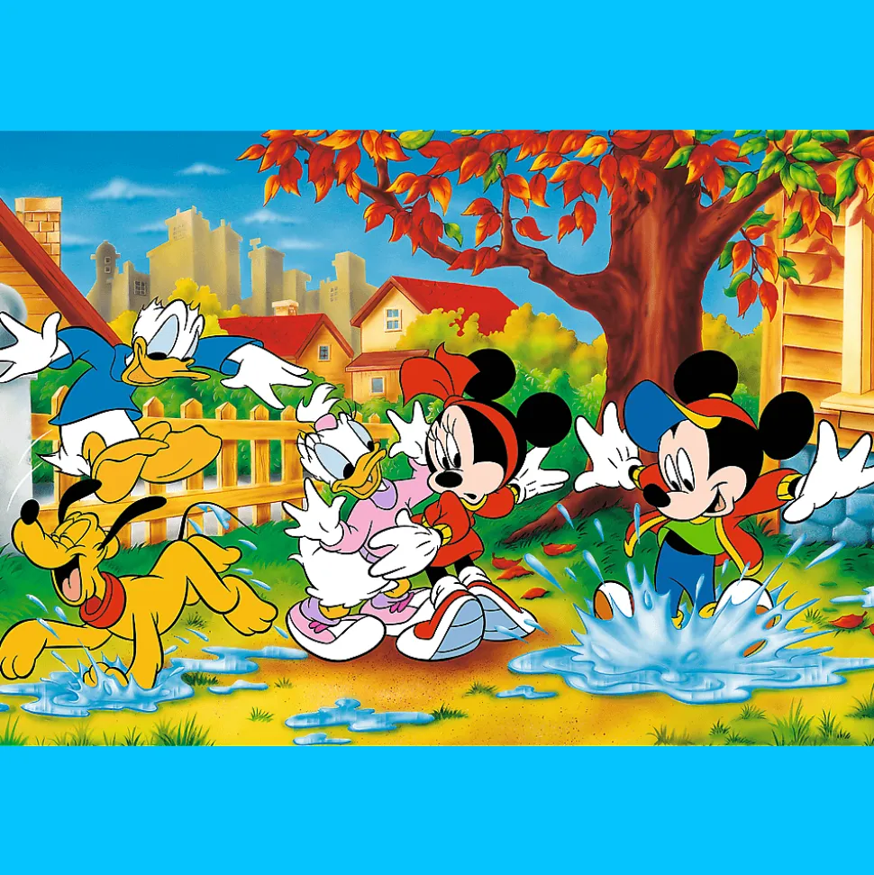 Zabawa w kałużach to puzzle składające się ze 160 elementów, które zachwycą małych fanów Myszki Mickey. Wchodzą w skład jubileuszowej serii układanek na 40-lecie firmy. Po ich ułożeniu powstanie obrazek o wymiarach 410×275 mm.