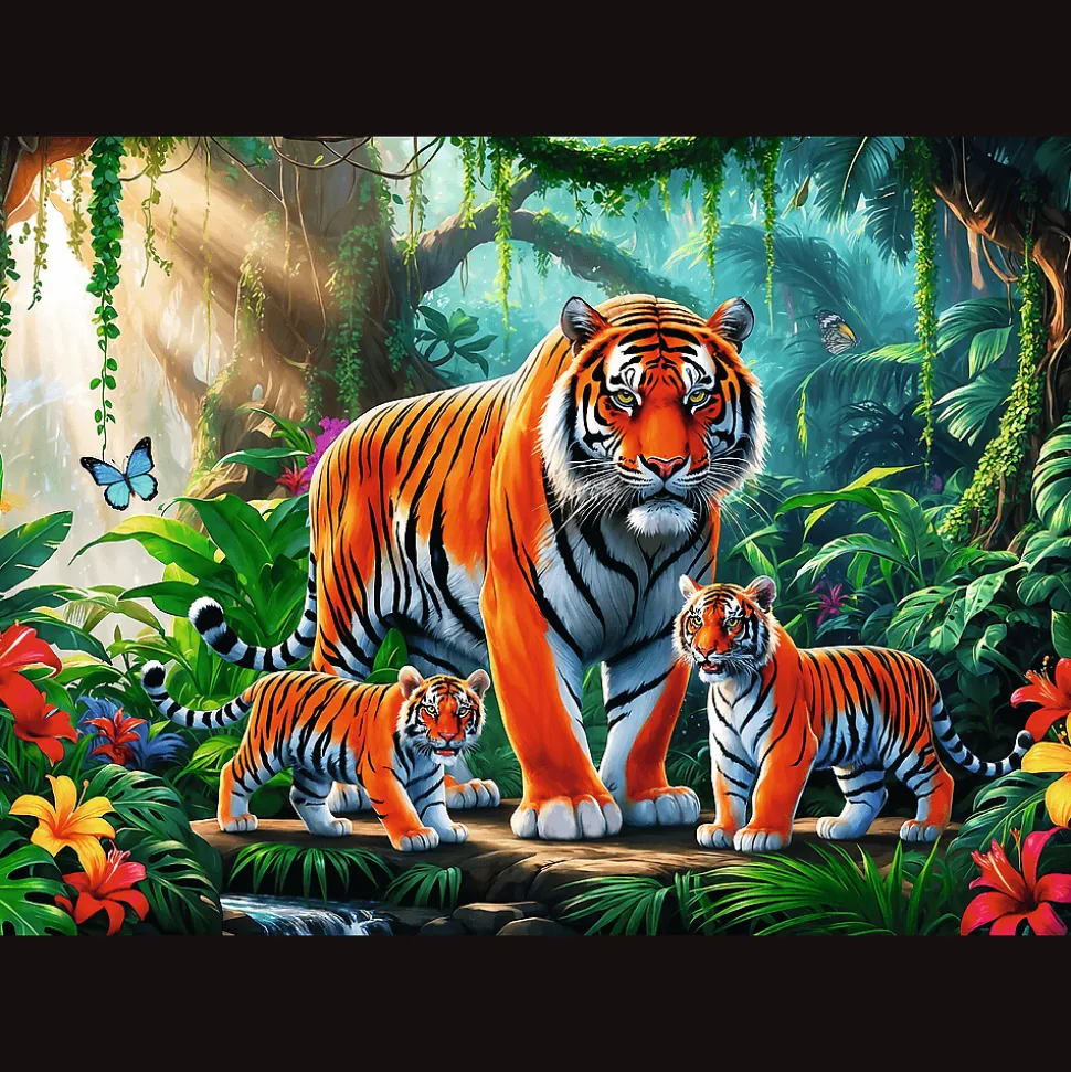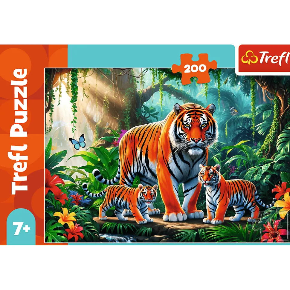 Tygrysie zwyczaje to puzzle składające się z 200 elementów, które zachwycą małych fanów zwierząt. Po ułożeniu powstanie obrazek o wymiarach 480×340 mm.