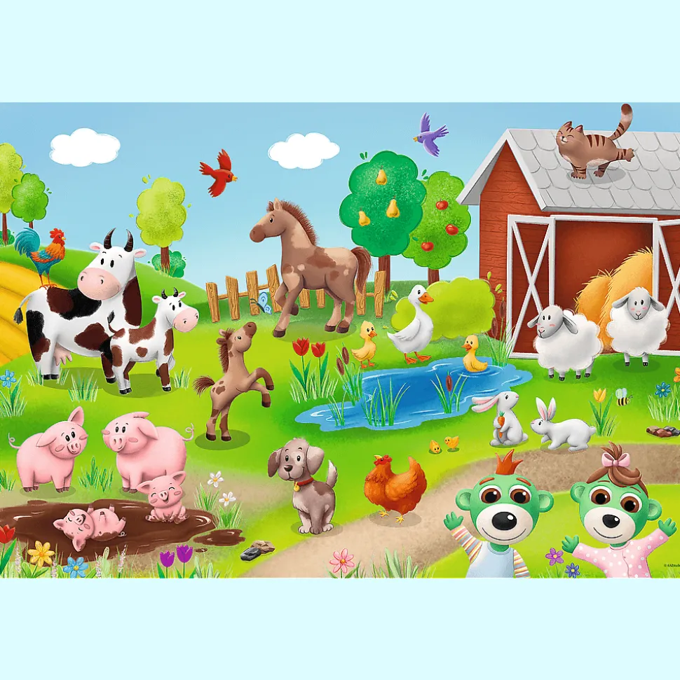 Bobaski i zwierzęta to puzzle dla maluchów, składające się z 24 bardzo dużych elementów. Zostały zaprojektowane z myślą o małych miłośnikach zwierząt i bajki Bobaski i Miś. Po ułożeniu układanki powstanie duży obrazek o wymiarach 600×400 mm.