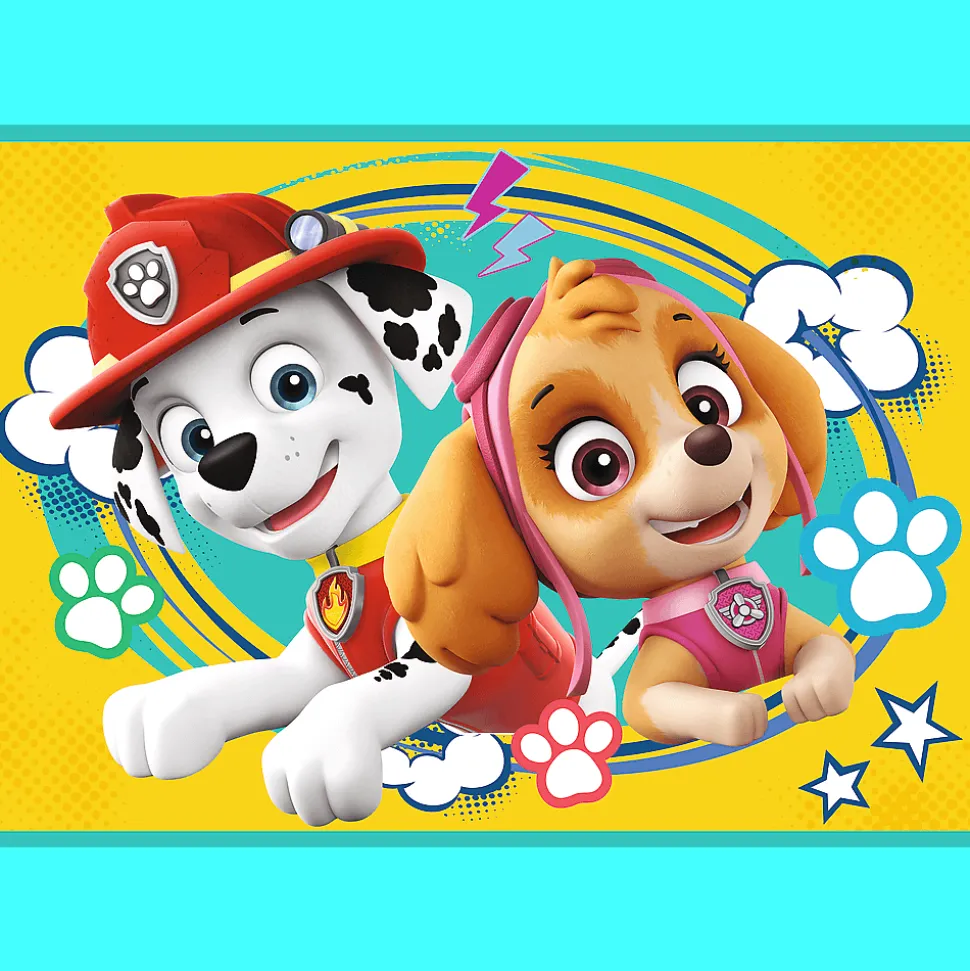 Wesoła ekipa Psiego Patrolu to puzzle składające się z 4 niezależnych układanek, zaprojektowane z myślą o wszystkich fanach i fankach popularnego serialu dla dzieci Psi Patrol. Po ułożeniu układanek powstaną obrazki o wymiarach 285×205 mm. Zróżnicowana liczba elementów pozwala na zabawę zarówno młodszym, jak i nieco starszym dzieciom.