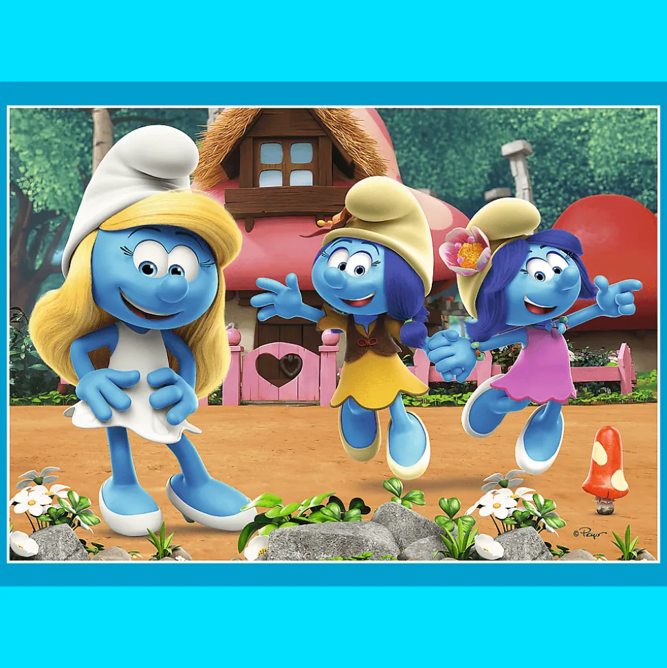 Wioska Smerfów to 4 niezależne układanki, zaprojektowane z myślą o małych fanach przygód bohaterów bajki Smerfy. Po ułożeniu puzzli powstaną 4 obrazki, z czego największy o wymiarach 285×205 mm. Zróżnicowana liczba elementów pozwala na zabawę zarówno młodszym, jak i nieco starszym dzieciom.