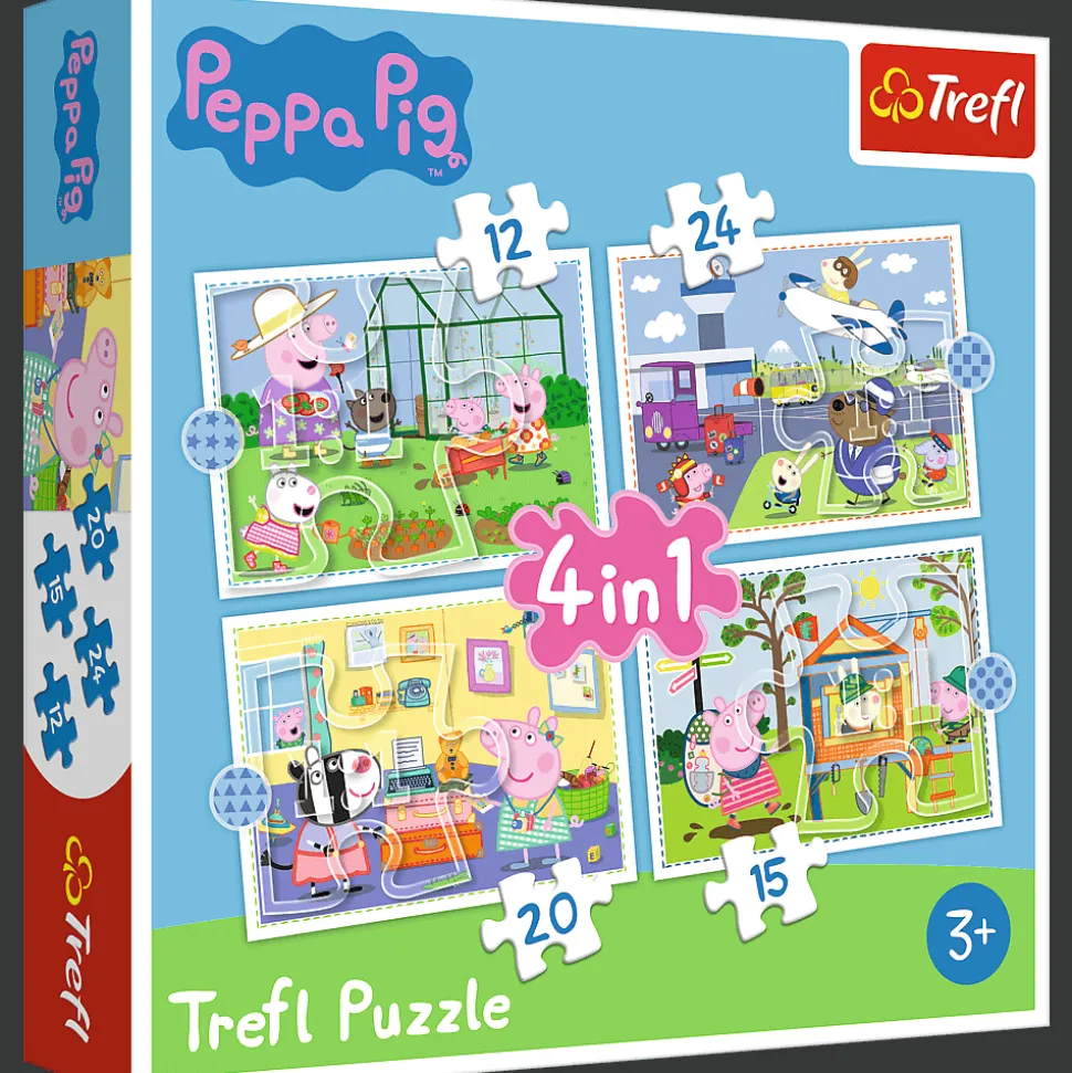 Wspomnienia z wakacji to puzzle składające się z 4 niezależnych układanek, zaprojektowane z myślą o wszystkich fanach i fankach bajki Świnka Peppa.