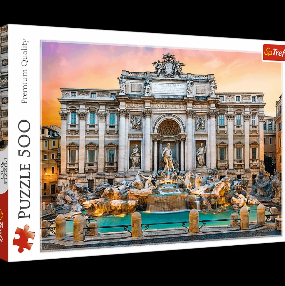 Puzzle 500 elementów ze wspaniałą, rzymską Fontanna di Trevi. Niezwykle piękne zdjęcie zachwyci nawet najbardziej wymagających fanów puzzli. Po ułożeniu powstanie obrazek o wymiarach 48×34 cm. Wysoką jakość, nasycenie kolorów i bezpieczeństwo układania zapewnia kalandrowany papier odbijający światło, pokryty ekologicznymi farbami spożywczymi.