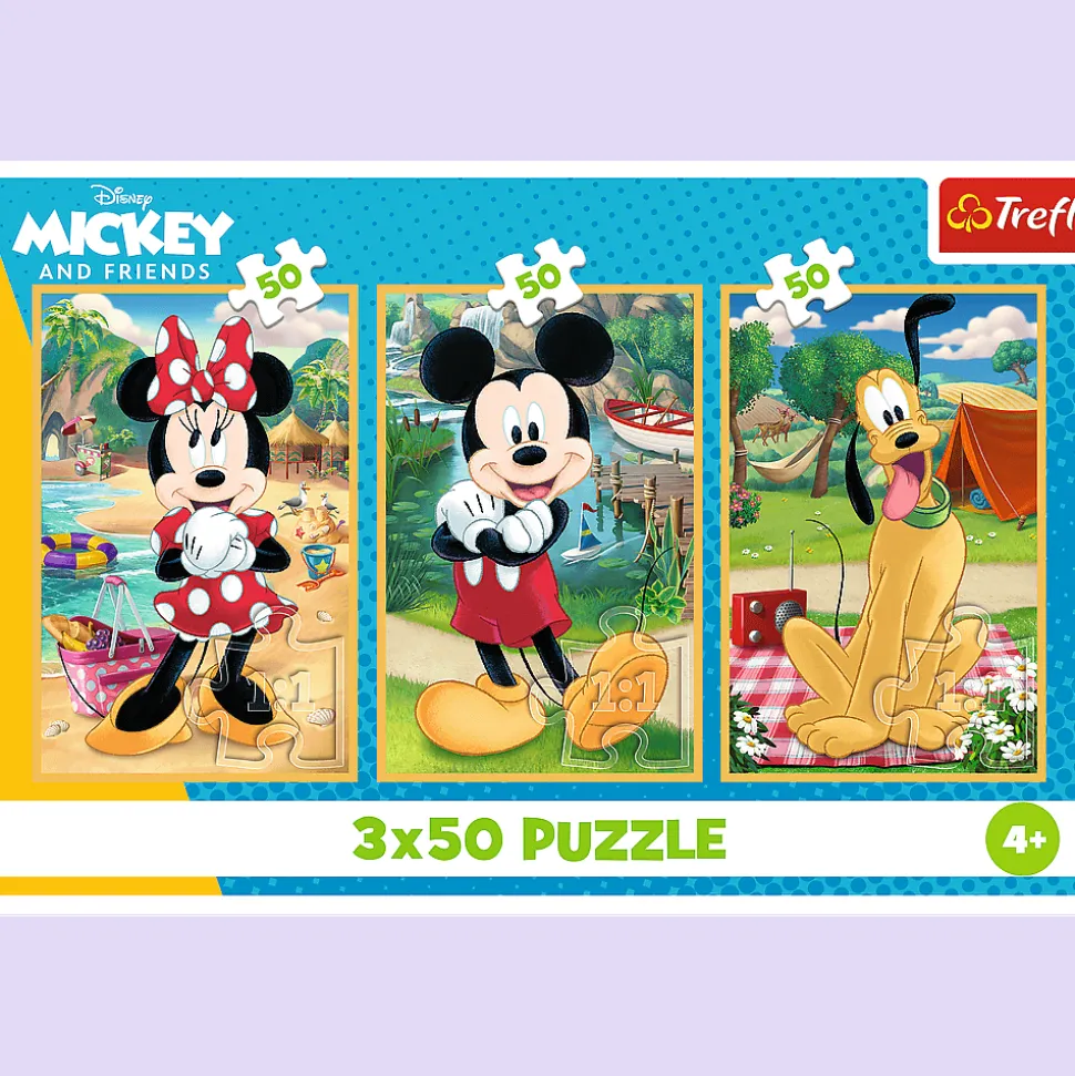 Myszki na wakacjach to puzzle przedstawiające kultowych bohaterów Disneya: Myszkę Miki, Minnie oraz Pluto. Każda z układanek pozwoli stworzyć obrazek o wymiarach 275×180 mm.