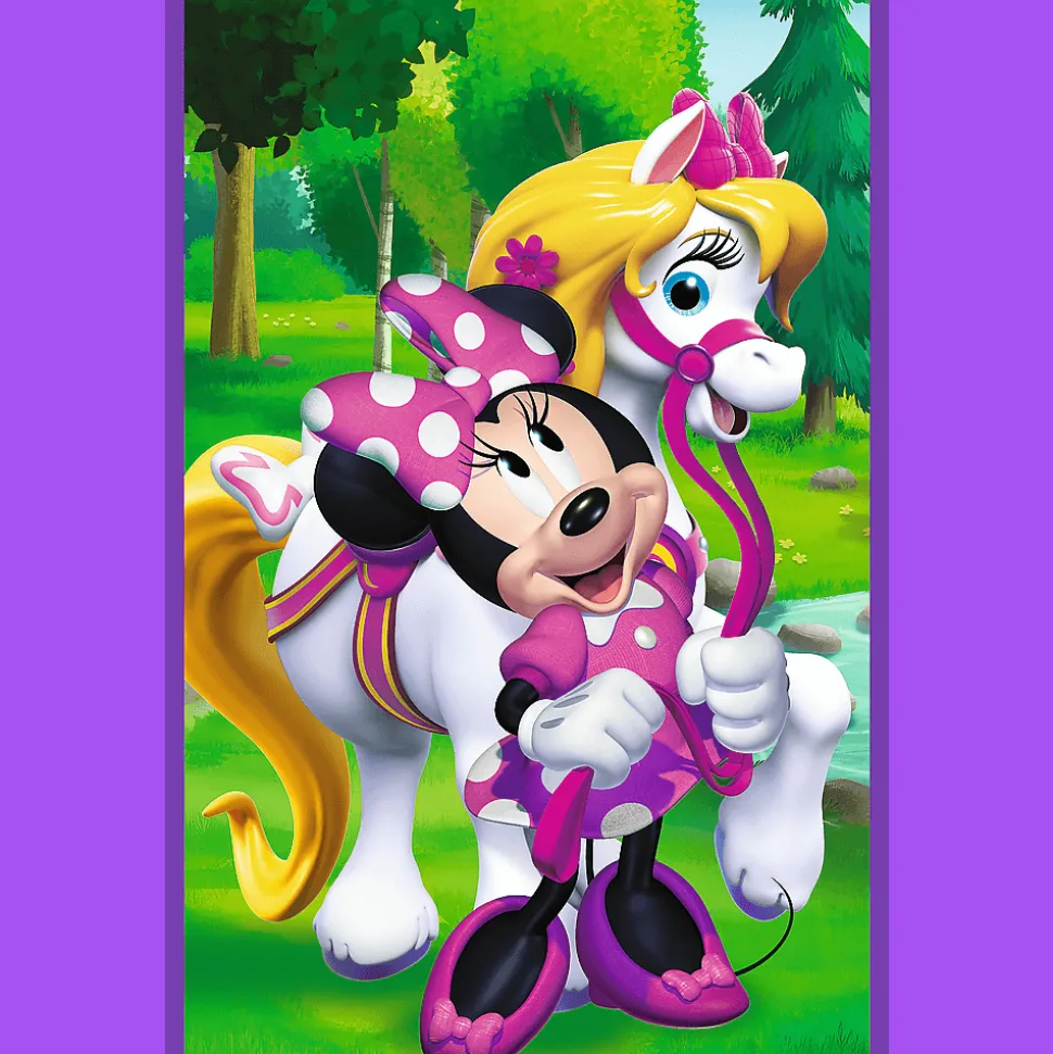 Minnie i przyjaciele to puzzle przedstawiające bohaterki bajek Disneya: Minnie i Daisy. Każda z układanek pozwoli stworzyć obrazek o wymiarach 275×180 mm.