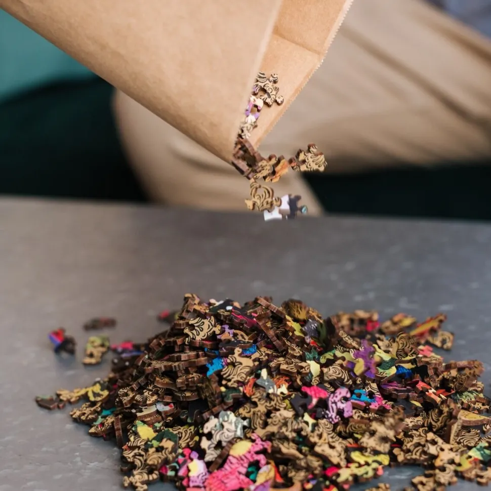 Seria puzzli 1000 elementów jest idealna dla wszystkich miłośników układanek, pozwoli stworzyć obrazek o wymiarach 51,9 x 37,5 cm przedstawiający mapę świata w stylu antycznym. Układanka została wykonana z drewna, a opakowanie przyjazne środowisku w całości z tektury. Puzzle zawierają nieregularne elementy oraz 100 figurek o tematyce podróżniczej.