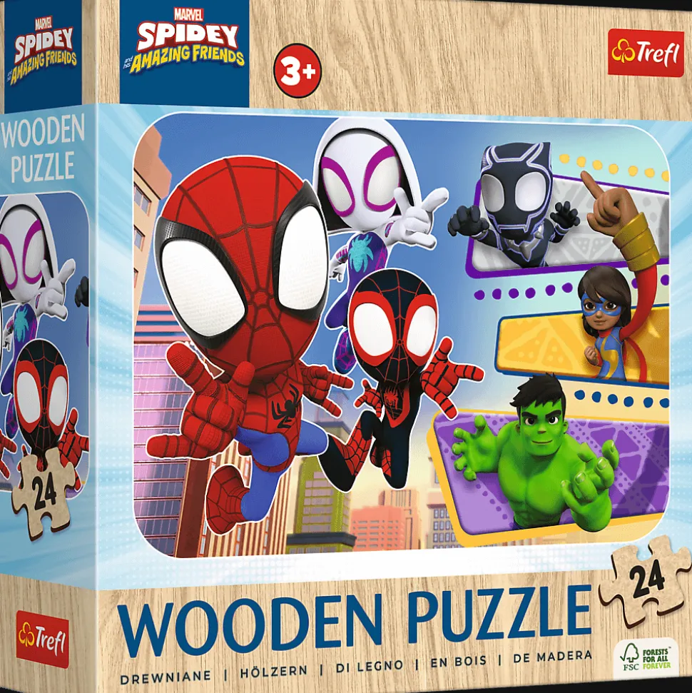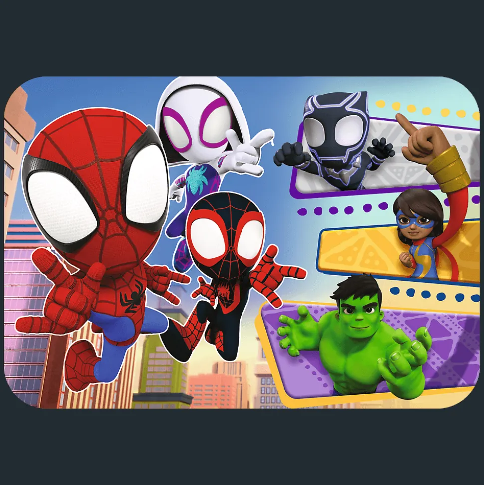 Puzzle Odważny Spiday i przyjaciele przeniosą najmłodszych do świata bajki Marvela – Spidey i super kumple.