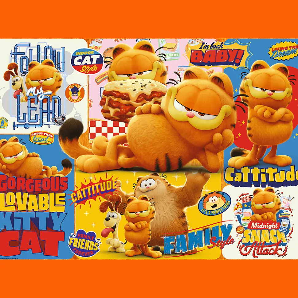 Puzzle Przygody Garfielda, składające się z 1000 elementów, przedstawiają kolaż z bohaterami filmu animowanego Garfield. Po ich ułożeniu powstanie obrazek w rozmiarach 683×480 mm.