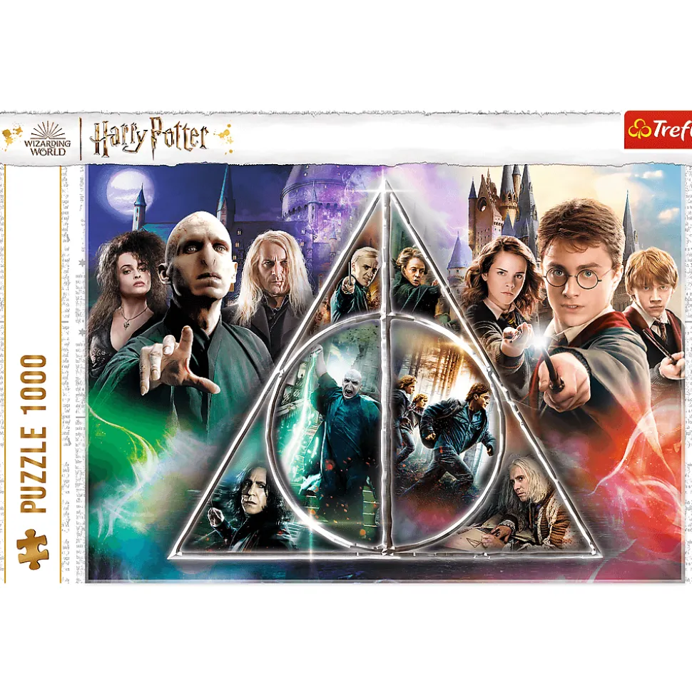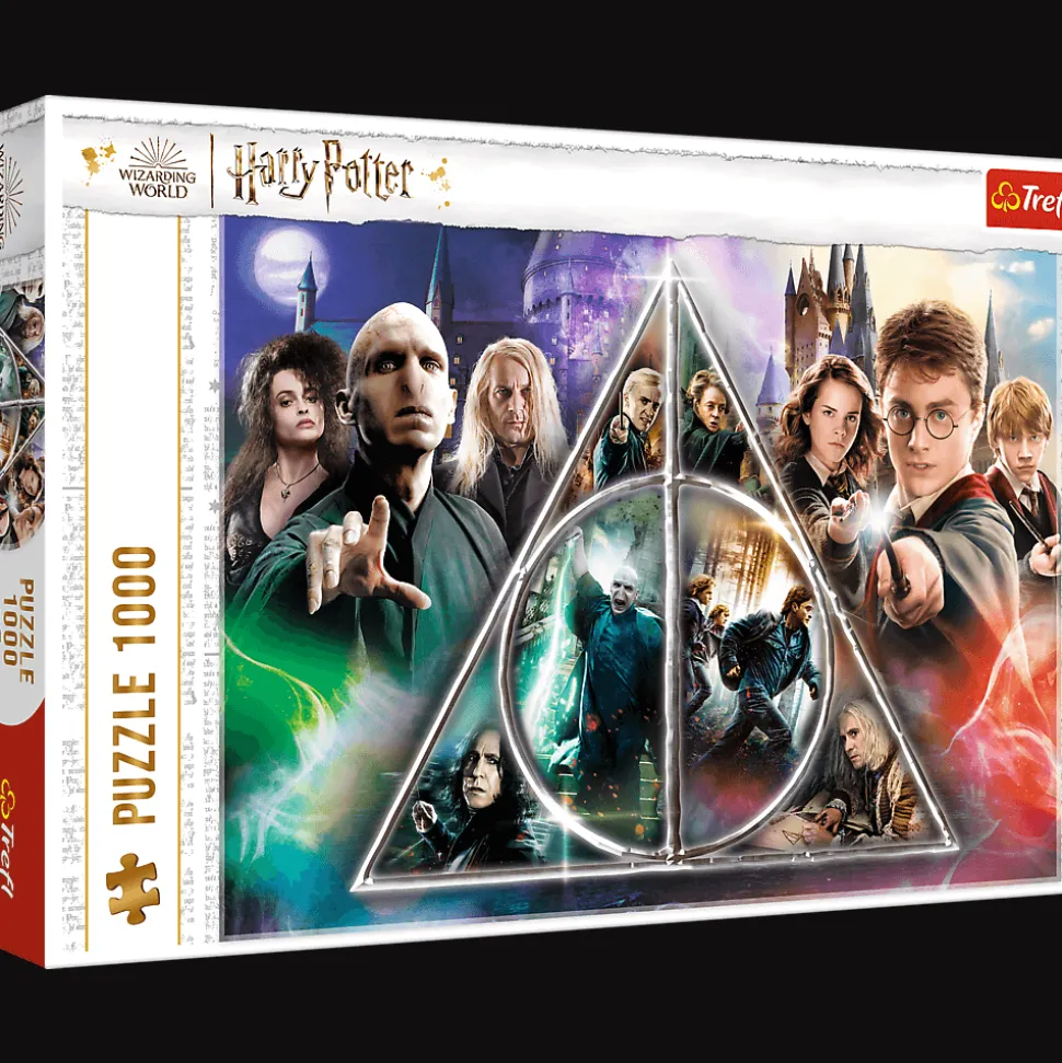 Puzzle 1000 elementów stworzone z myślą o nieco starszych fanach Harrego Pottera. Puzzle przeznaczone są dla dzieci w wieku powyżej 10 lat oraz dorosłych. przedstawiający bohaterów z filmu Harry Potter i Insygnia Śmierci. Wysoką jakość, nasycenie kolorów i bezpieczeństwo układania zapewnia kalandrowany papier odbijający światło, pokryty ekologicznymi farbami spożywczymi.