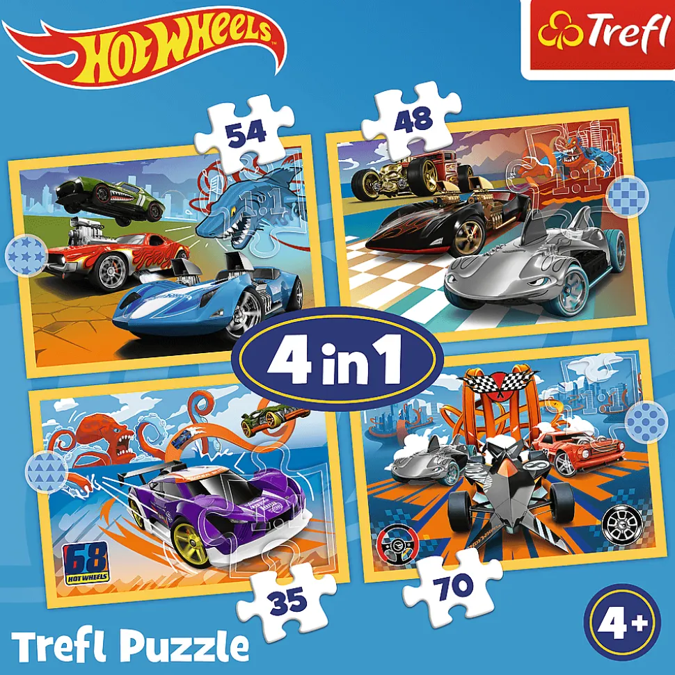 Pojazdy Hot Wheels to puzzle dla dzieci składające się z 4 niezależnych układanek, zaprojektowane z myślą o wszystkich fanach i fankach pojazdów Hot Wheels. Po ułożeniu puzzli powstaną cztery obrazki o wymiarach 285 x 205 mm każdy. Zróżnicowana liczba elementów (12, 15, 20, 24) pozwala na zabawę zarówno młodszym, jak i nieco starszym fanom puzzli.