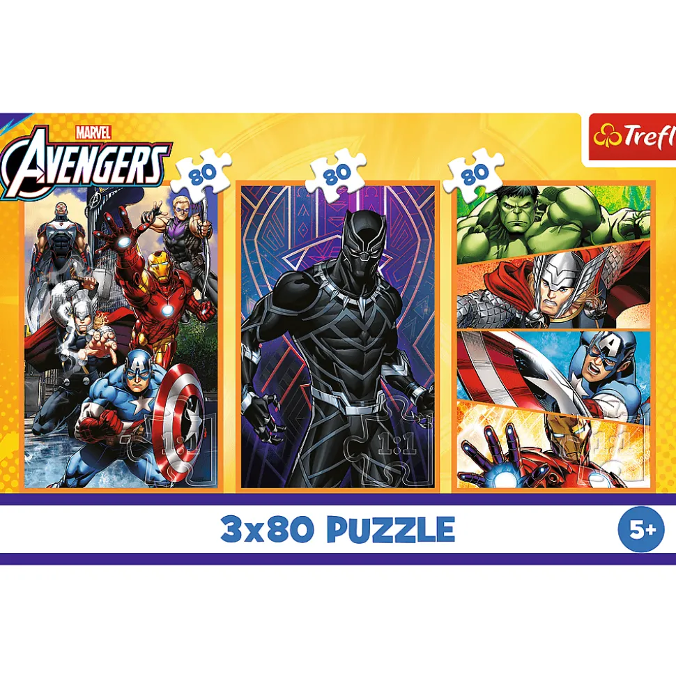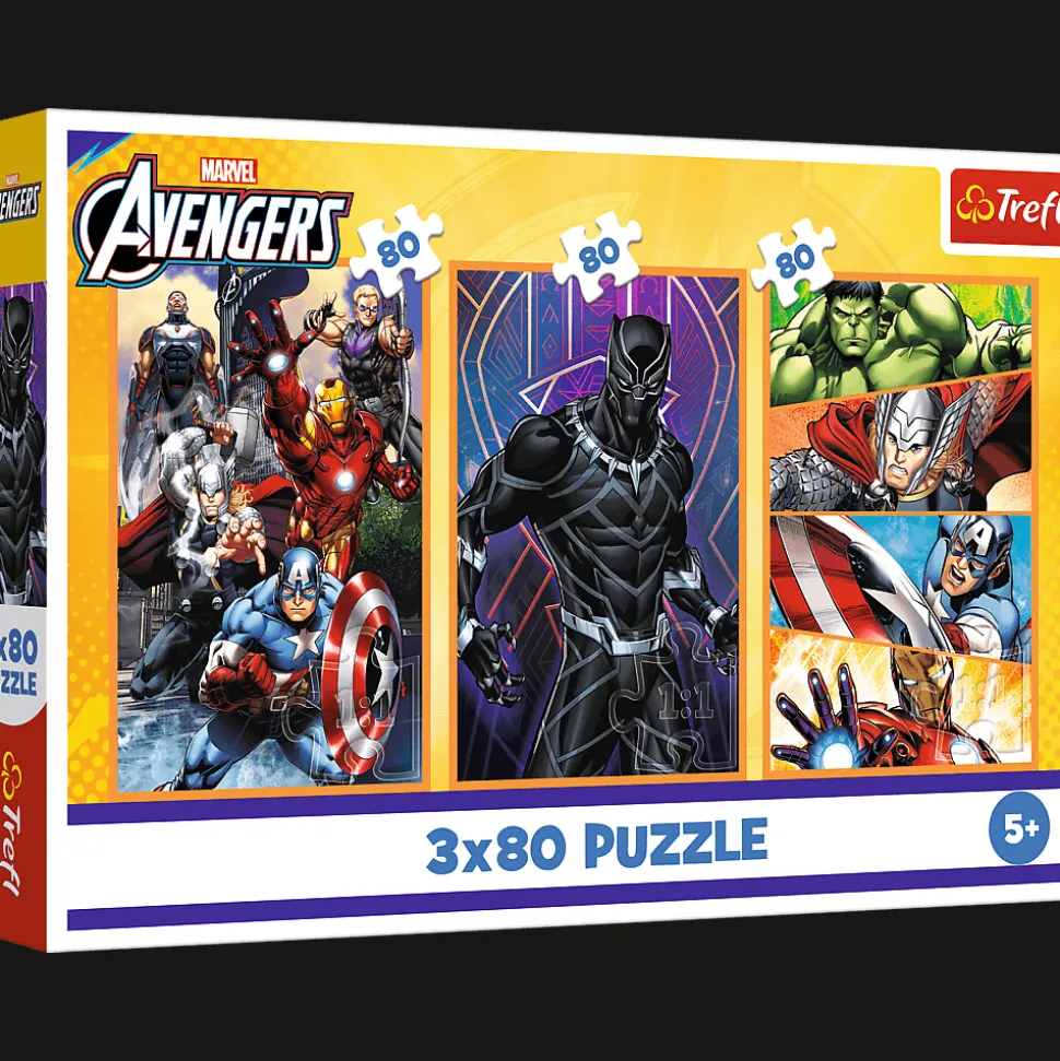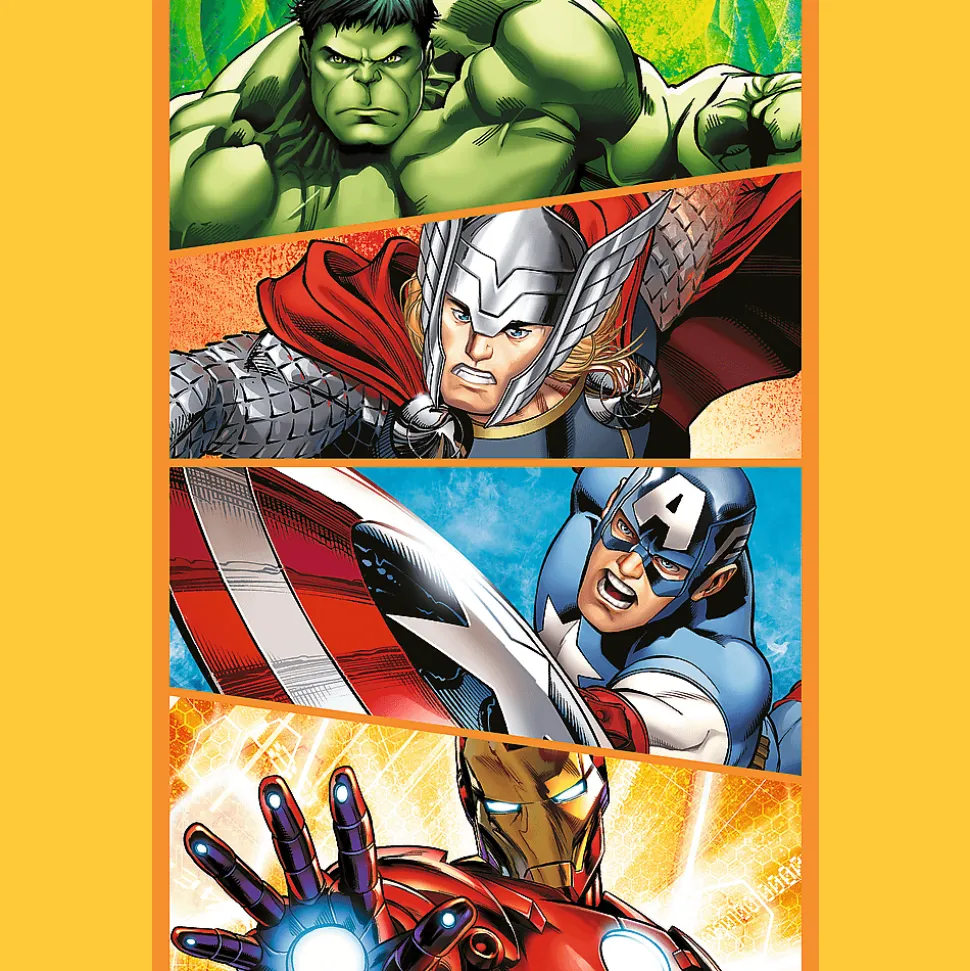 Dni pełne akcji to puzzle przedstawiające superbohaterów ekipy Avengers, takich jak: Kapitam Ameryka, Czarna Pantera, Thor, Iron Man czy Hulk. Każda z układanek pozwoli stworzyć obrazek o wymiarach 275×180 mm.