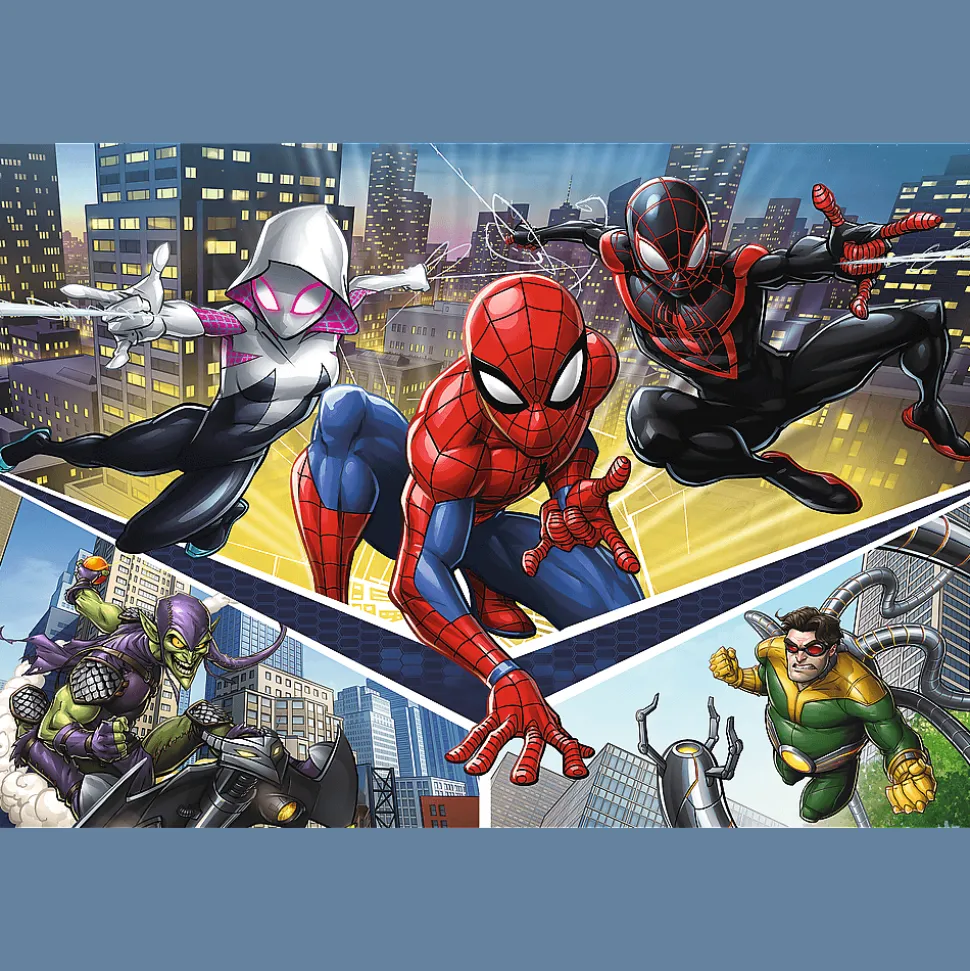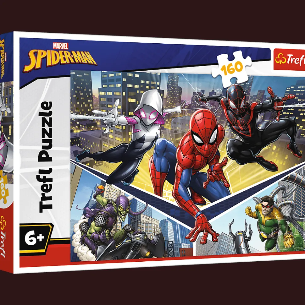 Siła Spidermana to puzzle składające się ze 160 elementów, które zachwycą małych fanów uniwersum Marvela i bajki Spider-man. Po ich ułożeniu powstanie obrazek o wymiarach 410×275 mm, przedstawiający supebohatera oraz jego przyjaciół i wrogów.