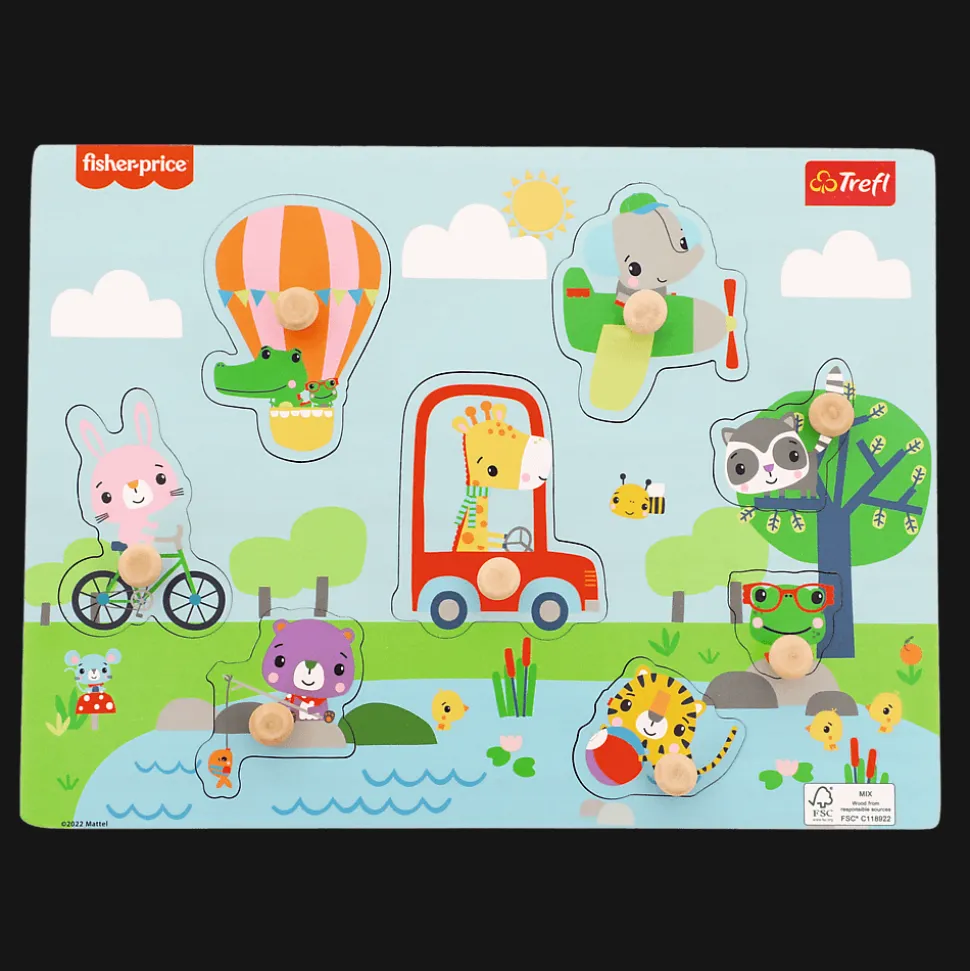 Puzzle medium zostały stworzone z myślą o najmłodszych, ponieważ są świetną zabawką już od 18. miesiąca życia. Zadaniem dziecka jest dopasowanie 8. elementów do wyżłobień w podstawce, co ułatwia grafika znajdująca się w otworach. Zadanie umilają uśmiechnięte zwierzątka.