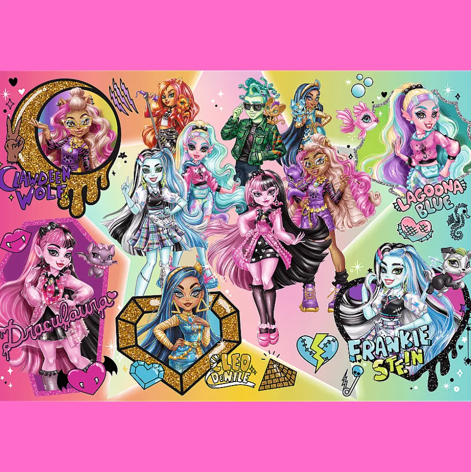 Zombie górą! to puzzle składające się z 300 elementów przedstawiające lalki z serii Monster High. Po ułożeniu układanki powstanie obrazek o wymiarach 600×400 mm.