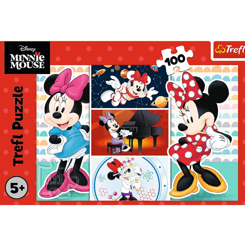 Zabawna Minnie to puzzle składające się z 100 elementów, zaprojektowane z myślą o małych fanach bajki Myszka Minnie. Po ułożeniu układanki powstanie obrazek o wymiarach 410×275 mm.