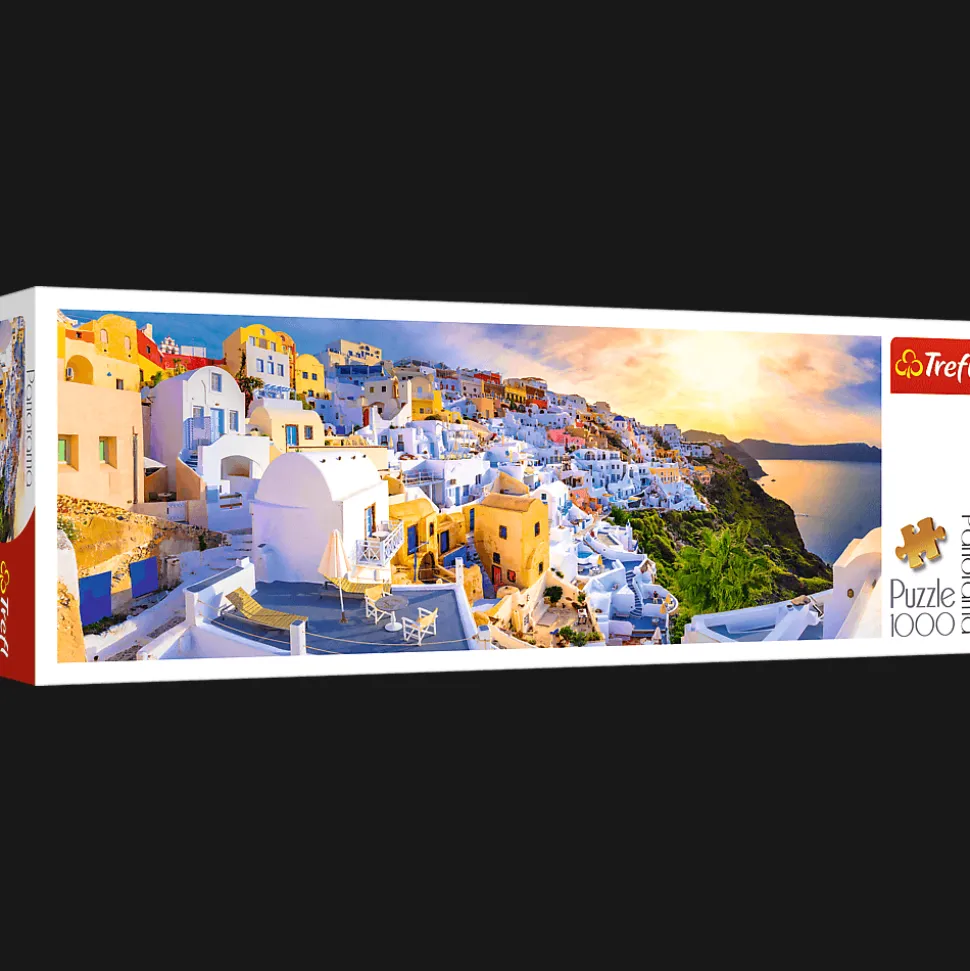 Zachód słońca na Santorini, Grecja to puzzle panoramiczne składające się z 1000 elementów, zaprojektowane specjalnie z myślą o fanach greckich widoków.