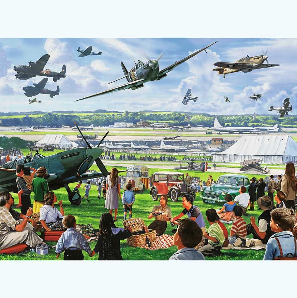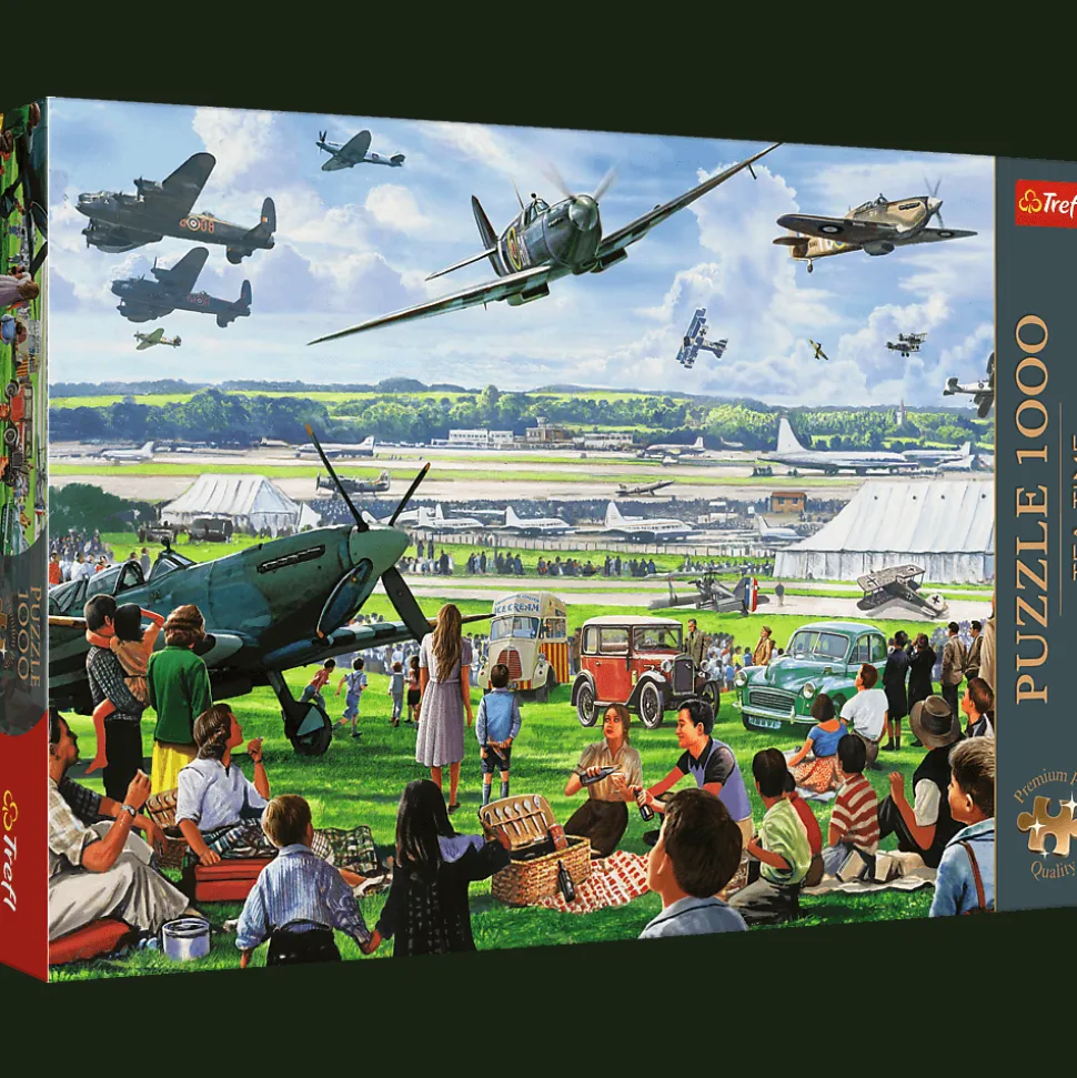 Puzzle Pokaz lotniczy przedstawiają lotnicze widowisko z dawnych lat. Po ich ułożeniu powstanie obraz o wymiarach 683×480 mm.