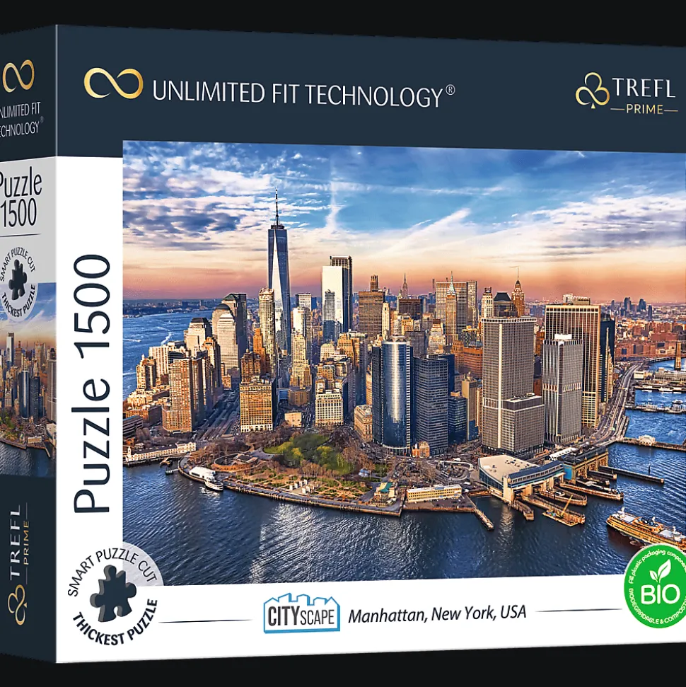 Puzzle z serii Trefl Prime Unlimited Fit Technology składające się z 1500 elementów są dedykowane prawdziwym miłośnikom układanek. Puzzle przedstawiają miasto Manhattan w Nowym Jorku. Po ułożeniu powstanie obraz o wymiarach 850×580 mm.