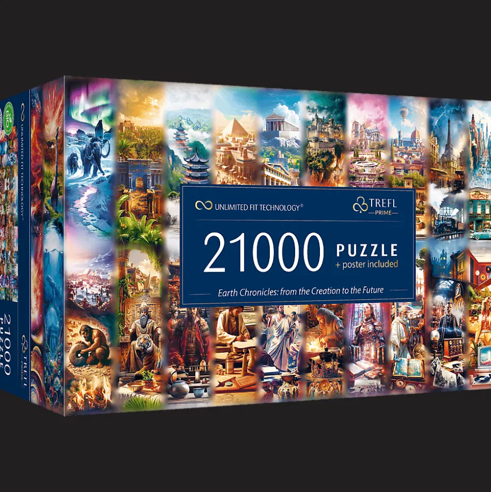 Odkryj puzzle Trefl Prime UFT – Earth Chronicles: from the Creation to the Future, składające się z imponujących 21 000 elementów! Ułóż gigantyczną układankę puzzlową przedstawiającą artystyczną wizję: od początków Ziemi aż po przyszłość!