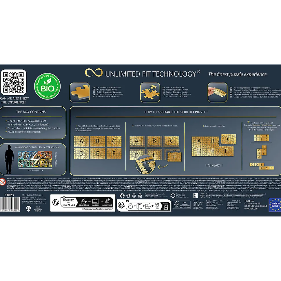 Odkryj puzzle Trefl Prime UFT – The Houses of Hogwarts, składające się z imponujących 9000 elementów! Przenieś się do świata Harrego Pottera i ułóż ogromną układankę puzzlową przedstawiającą członków i znane symbole czterech domów Hogwardu.