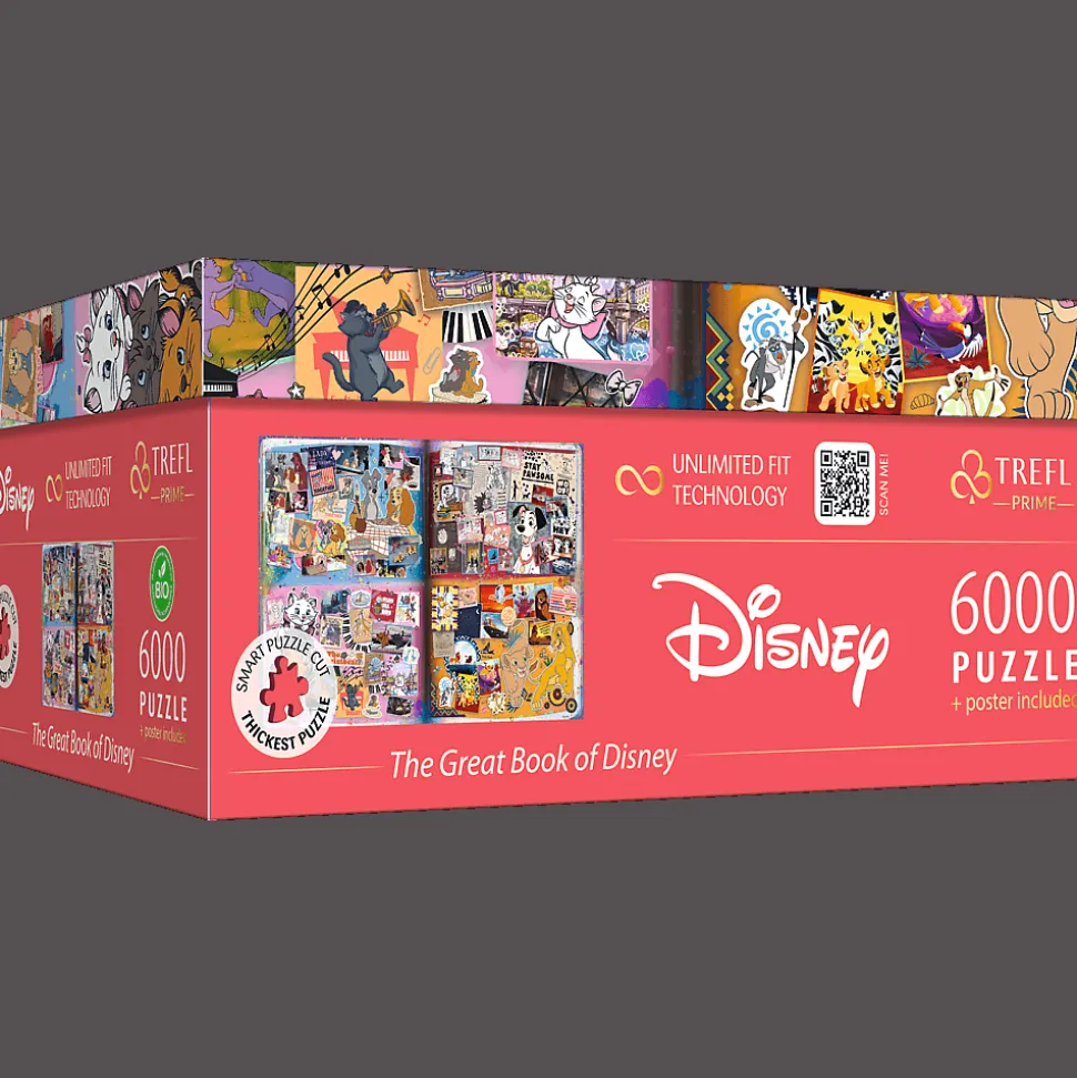 Odkryj puzzle Trefl Prime UFT – The Great Book of Disney, składające się z imponujących 6000 elementów! Ułóż kolaż przypominający strony z książki, na których znajdziesz bohaterów znanych bajek Disnea!