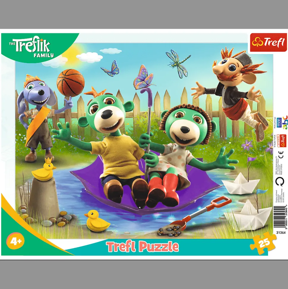Puzzle ramkowe to kolorowy obrazek z bohaterami bajki Rodzina Treflików, który z pewnością zachęci dzieci do układania. Dodatkowo rozwinie u nich takie umiejętności, jak: liczenie, rozpoznawanie kolorów, umiejętność kojarzenia, spostrzegawczość i dostarczą wiedzy o otaczającym je świecie. Układanka zawiera 25 elementów umieszczonych w ozdobnej, spójnej graficznie ramce, tworzącej z obrazkiem bardzo ładną całość.