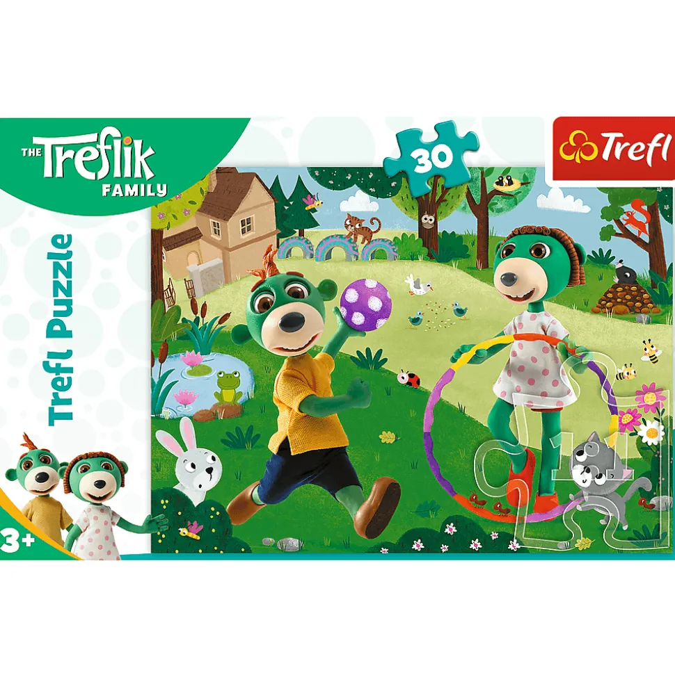 Puzzle Aktywny dzień składające się ze 30 elementów, zaprojektowaną z myślą o wszystkich fanach i fankach serialu animowanego Rodzina Treflików. Po ułożeniu układanki powstanie obrazek o wymiarach 270x200mm.