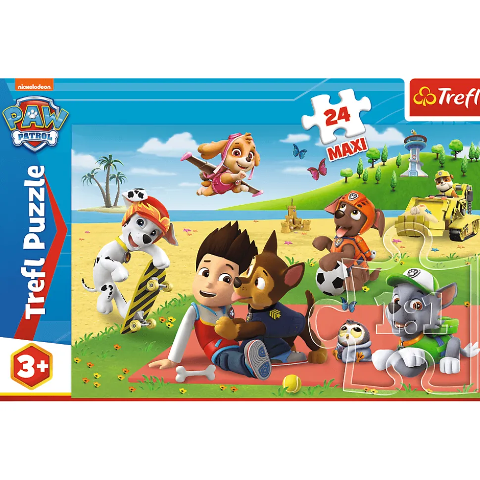 Puzzle 24 maxi składające się z bardzo dużych elementów, zaprojektowaną z myślą o wszystkich fanach i fankach serialu animowanego Psi Patrol. Po ułożeniu układanki powstanie duży obrazek, o wymiarach 600x400mm. Produkt został wykonany z wysokiej jakości materiałów, z zastosowaniem specjalnego kalandrowanego papieru odbijającego światło, co ułatwia układanie. Produkt został wyprodukowany w Polsce, a do produkcji zostały użyte materiały ekologiczne.