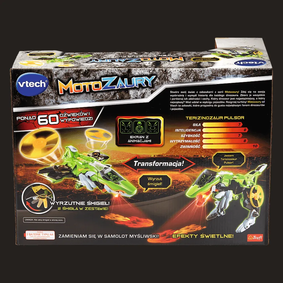 Seria Motozaury od Vtech to zabawki 2w1, które pokochają mali miłośnicy dinozaurów i pojazdów. Zbierz wszystkie i porównaj ich zdolności oraz cechy!