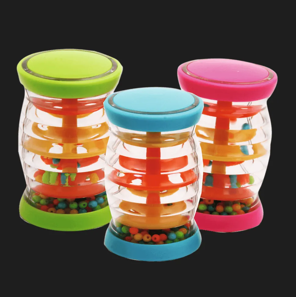 Grzechotka Deszczyk to wyjątkowy shaker w kształcie tuby — mocny i lekki, z teksturowanym uchwytem, idealnym dla małych rączek dziecka. Wirujące koraliki wydają delikatny dźwięk, przypominający spadanie kropli deszczu.