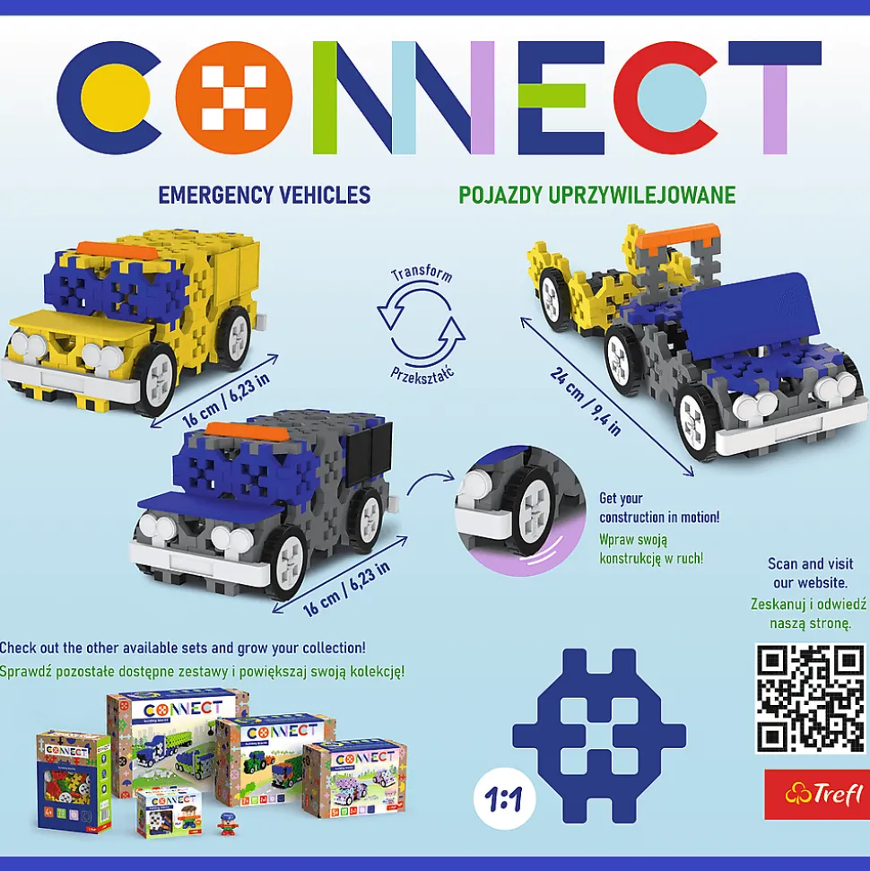 Poznaj serię Connect i zbuduj swój własny świat z klocków! Kolekcjonuj figurki i zamieniaj ich elementy, aby tworzyć jeszcze ciekawsze historie. Klocki Connect to wspaniała zabawa dla małych i dużych! Rozwijają kreatywność, uczą logicznego myślenia i rozwiązywania problemów. Pomagają zrozumieć zasady równowagi oraz symetrii, ćwiczą precyzję i umiejętności manualne.