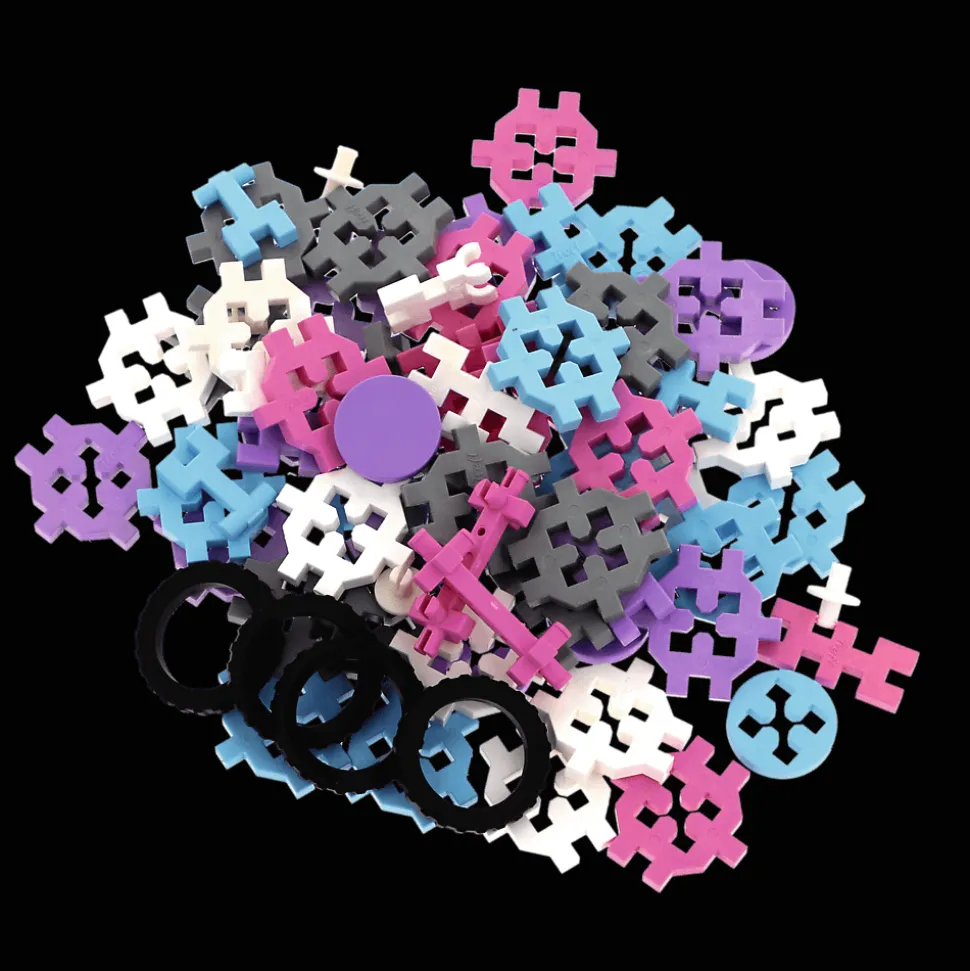 Zestaw Basic Girl zawiera podstawowe elementy i ruchome części, dzięki którym zbudujesz wyjątkowe, mobilne konstrukcje. W zestawie znajdziesz 70 klocków w różnych kształtach – buduj inspirując się przykładami z dołączonej ulotki lub puść wodzę fantazji i daj upust kreatywności, realizując swoje pomysły.